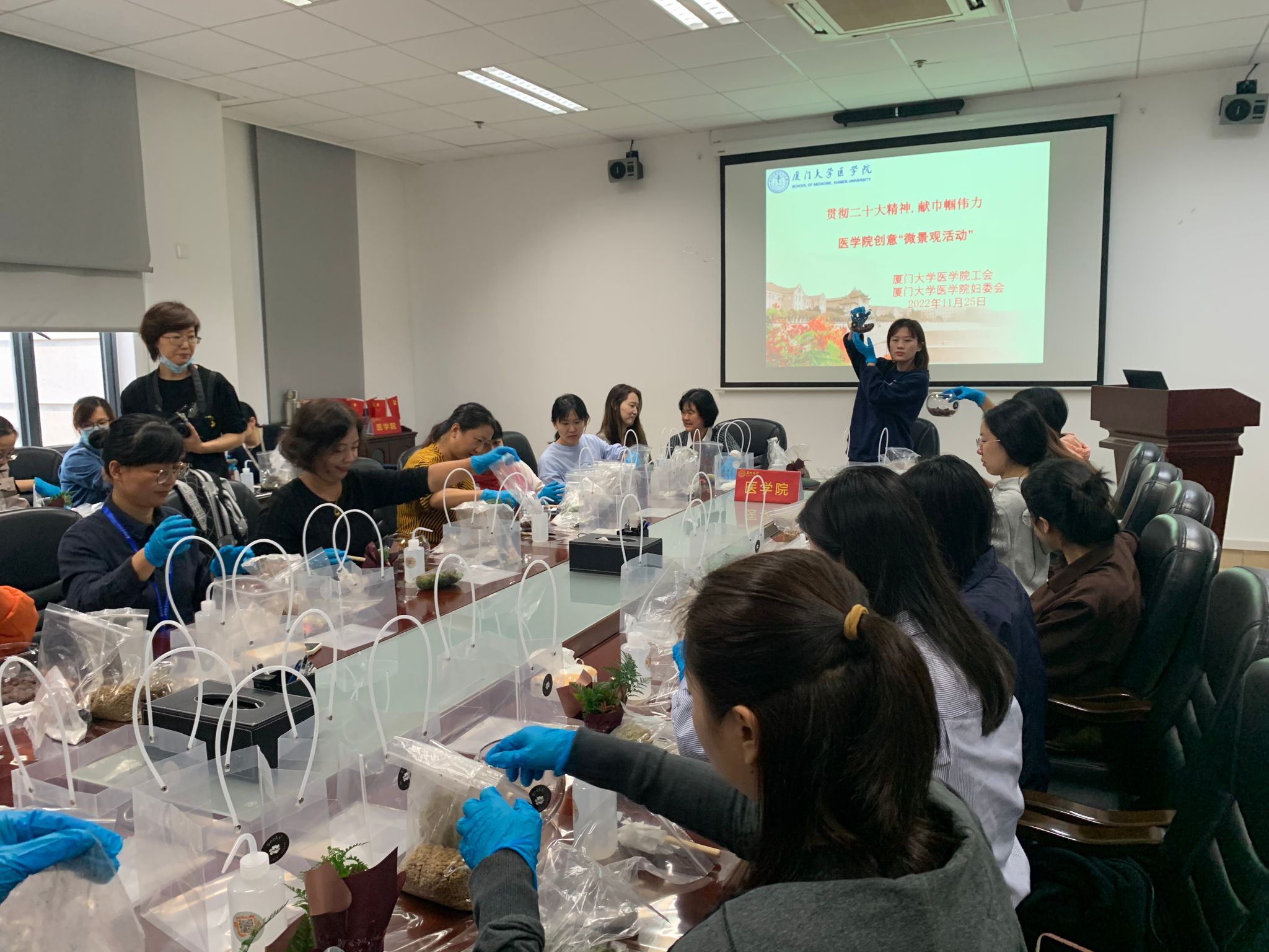 11月25日,由医OD(中国)工会、妇委会联合举办的“贯彻二十大精神,献巾帼伟力”创意微景观活动在爱礼楼103会议室成功举办。医OD(中国)三十余名女教职工参加了本次活动。活动由医OD(中国)妇委会副主任李文君主持。