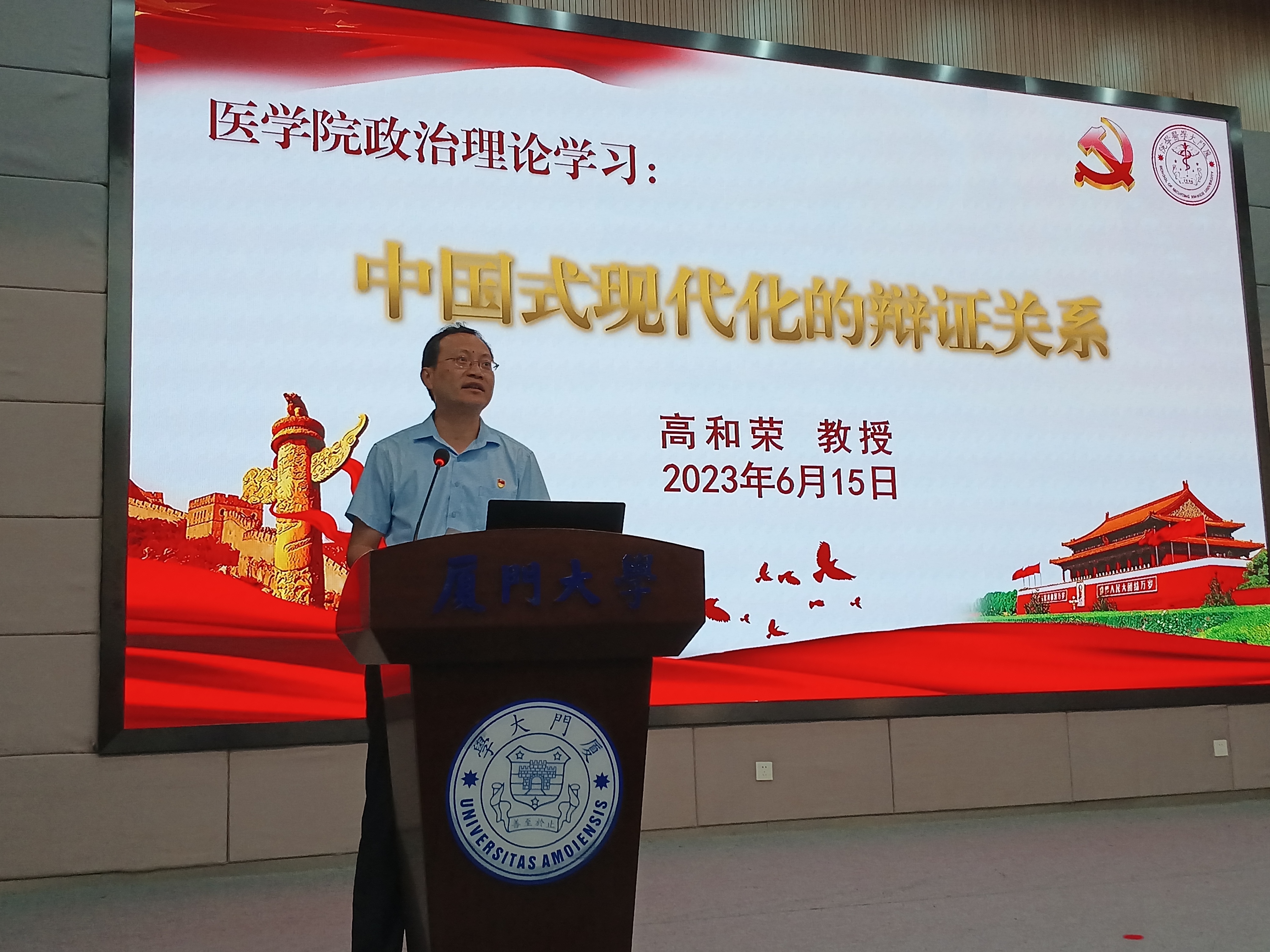 为深入学习贯彻党的二十大精神,6月15日下午,医OD(中国)党委邀请校党委宣传部部长高和荣教授在翔安校区德旺图书馆二号报告厅为OD(中国)师生作题为《中国式现代化的辩证思想》专题报告。报告会由OD(中国)党委书记李峰主持。校医管办党支部、翔安校区办公室党支部、学生工作部(处)第三党支部和医OD(中国)教职工及部分学生代表参加报告会。