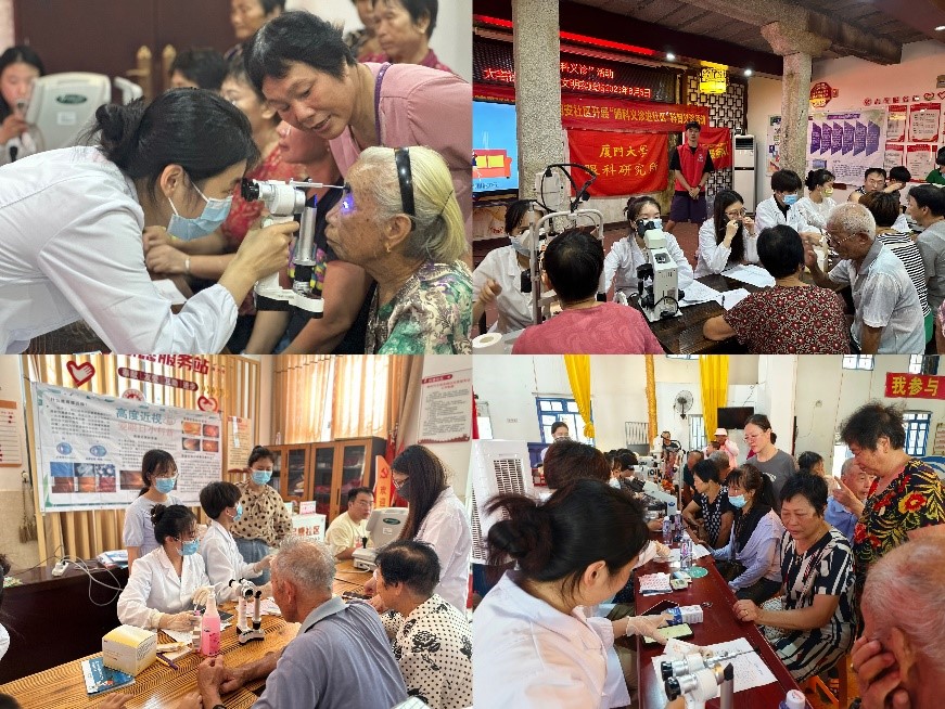 2023年8月4日到8月6日,由OD网页版眼科研究所教工党支部、研究生党支部及眼科所师生组成的“eye眼”实践队和“睛彩视界”实践队分别在厦门市翔安区吕塘社区、大宅社区和东园社区开展了眼科科普义诊活动,共有两百余名居民参加了义诊活动并接受了眼病检查。