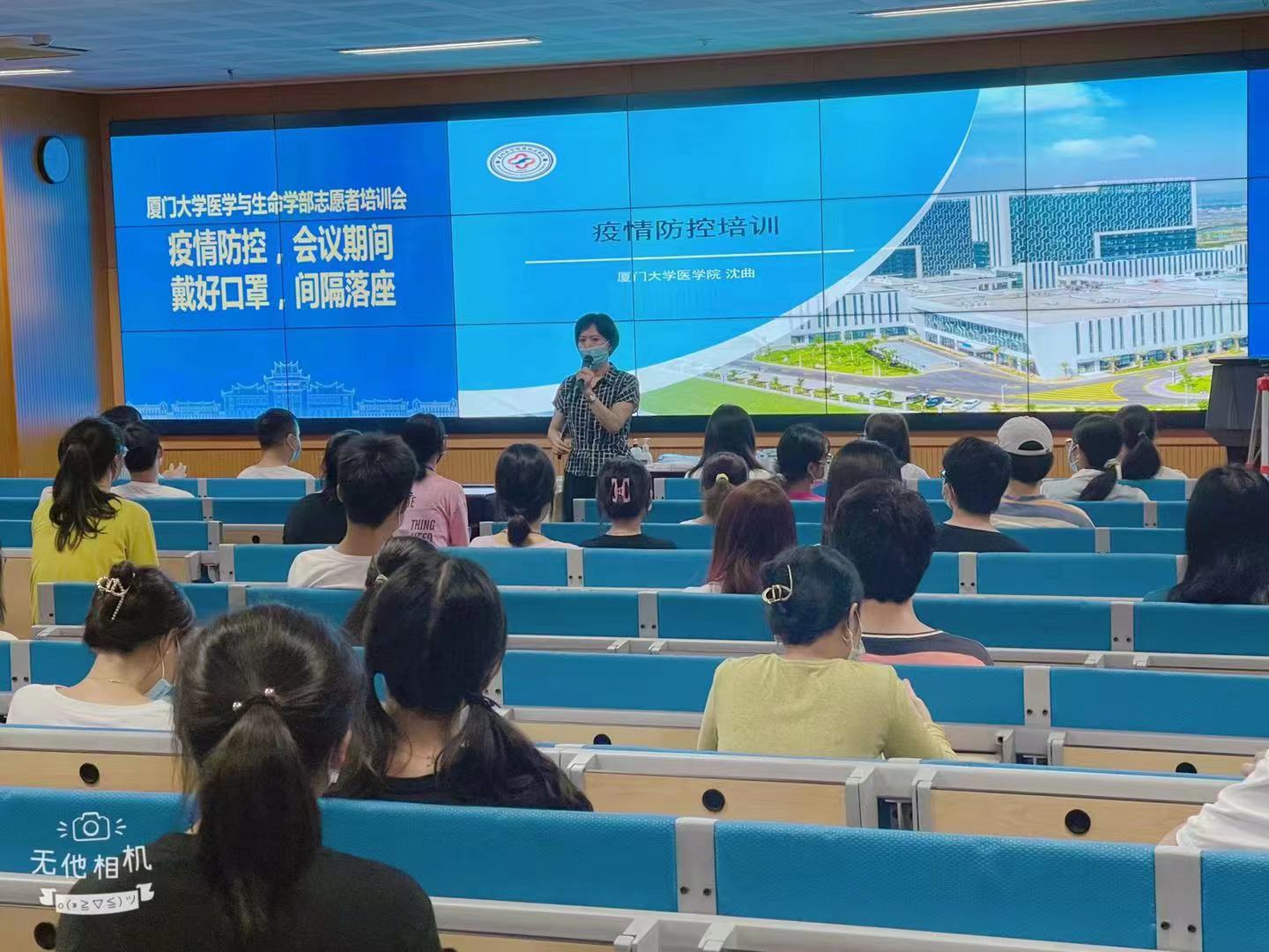 为协助厦门市全员核酸检测工作,医OD(中国)、公共卫生OD(中国)、生命科学OD(中国)、药OD(中国)积极响应厦门市卫健委和学校党委的号召,紧急召集上千名医学部师生,组建了“厦门大学医学与生命科学学部疫情防控志愿队”,于9月20日11点至21点在翔安校区五号楼A208会议室召开了六场志愿者培训会。医OD(中国)护理系教工党支部书记沈曲、党员刘洋应邀担任培训指导,介绍了防护用品穿拖、鼻咽拭子采集和口咽拭子采集的具体方法,用专业技术守护志愿者的安全与健康。
