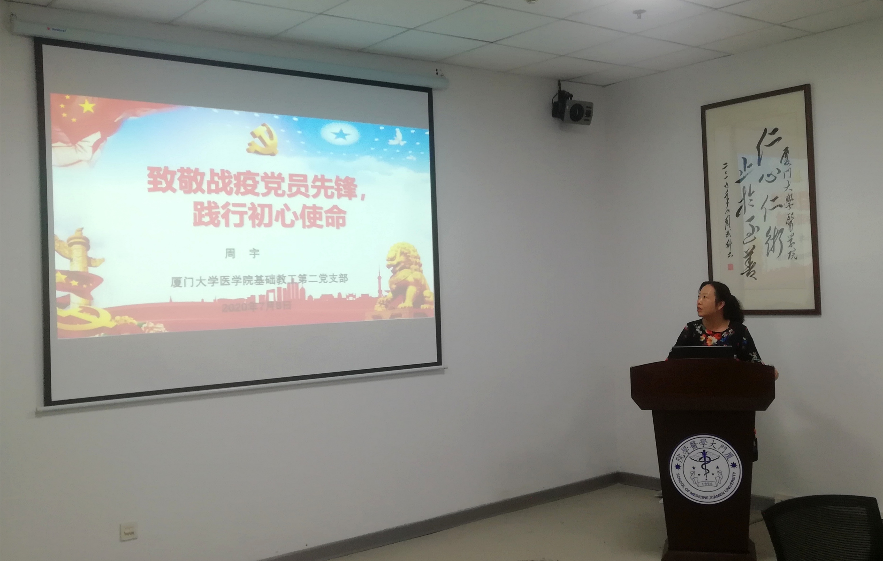 为庆祝建党九十九周年,学习和讲述在新型冠状肺炎疫情防控中涌现出的感人事迹,巩固“不忘初心、牢记使命”主题教育成果,按照厦门大学基层党组织常态化疫情防控“四个一”行动要求,7月8日下午,医OD(中国)基础二教工党支部在成智楼113会议室,以“迎党的生日,讲战疫故事,悟初心使命”为主题开展专题组织生活会。会议由支部书记周宇主持,OD(中国)党委副书记何丽苹,OD(中国)党委委员叶本兰及支部全体党员参加了本次会议。