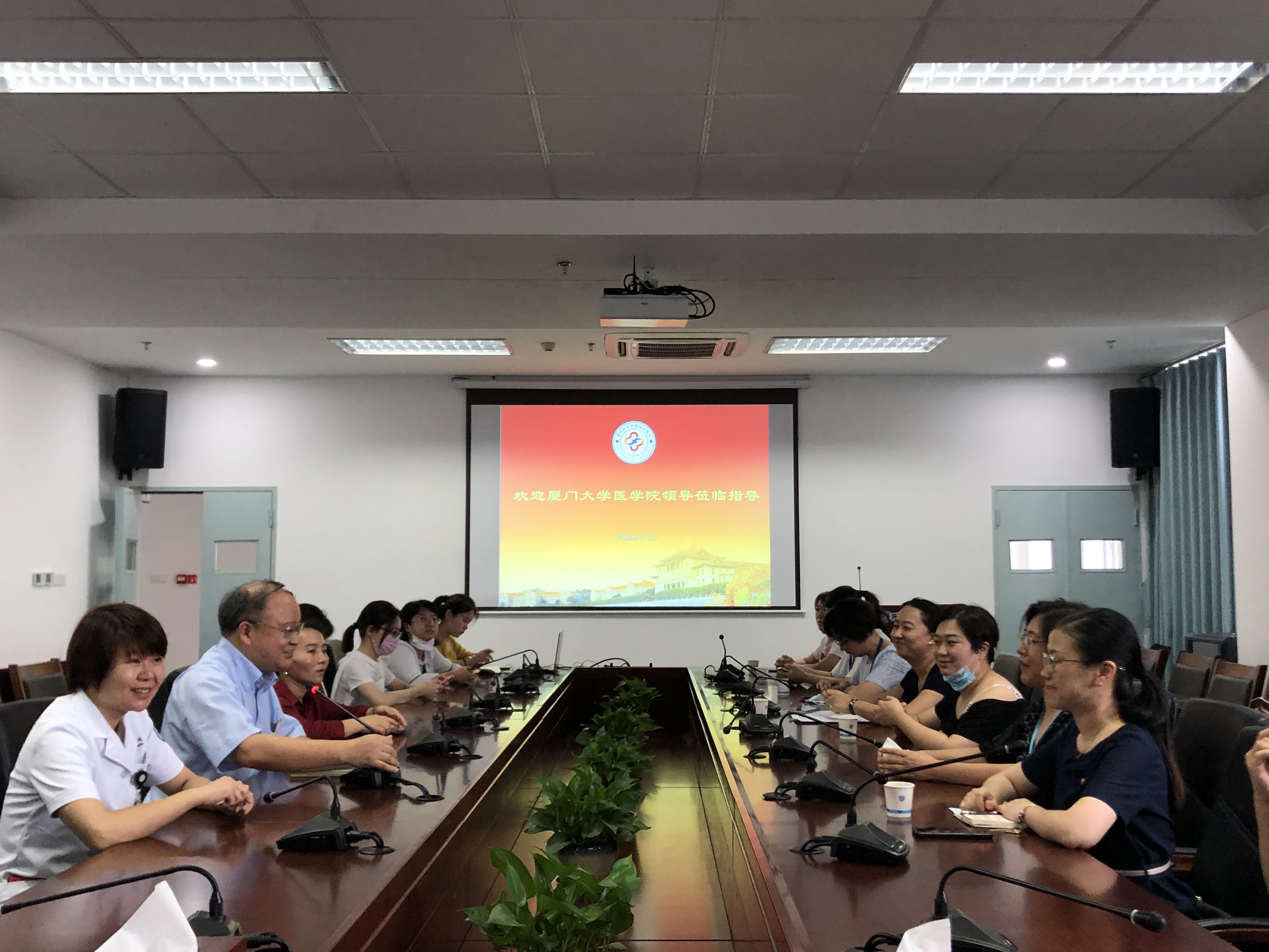 在座谈中,程继东副院长向与会老师介绍了翔安医院的科教研情况,展示了翔安医院蓬勃的发展势头。谢莉萍副院长感谢翔安医院的周到安排,提出双方可以在打通相关行政服务上做一些尝试。医OD(中国)加强对翔安医院教学、科研、人才引进等方面的统筹、指导和服务,示范中心建设尽可能把医OD(中国)现有人员利用起来、一体化推进。座谈中,双方对口部门的老师进行了交流,达成共识,医OD(中国)与翔安医院在综合性大学的大框架下,应充分利用优势互补、资源共享,逐步形成互相支持、互相依赖的唇齿相依关系,聚焦发力,实现融合发展。