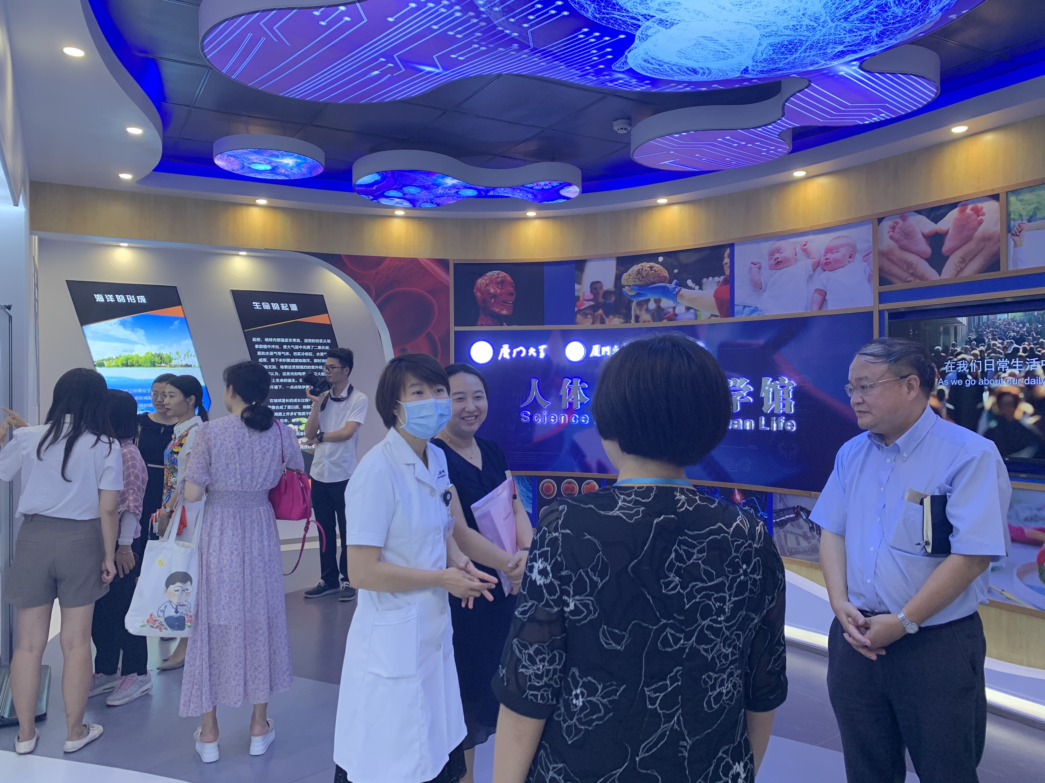 老师们走进人体生命科学馆,被AR、VR系统、3D和全息医学影像等先进的医学模拟技术吸引,发出阵阵赞叹声。示范中心张莉莉主任介绍,2018年12月,教育部、国家卫生健康委认定厦门大学附属翔安医院在内的74家高校附属医院(牵头医院)为首批国家临床教学培训示范中心。中心以“发展一流医学教育,培养医学基础厚、临床技能实、人文素养深、创新能力强的高水平医学人才”为教学宗旨,以加强师资建设、创新培养模式为重点,以加强平台建设、强化实践训练为特色,建立高层次、国际化的临床医学人才培养体系和覆盖院校医学教育、毕业后医学教育及继续医学教育全程的临床教学培训平台,可满足多层次、多学科医学人才培养的教学需要。