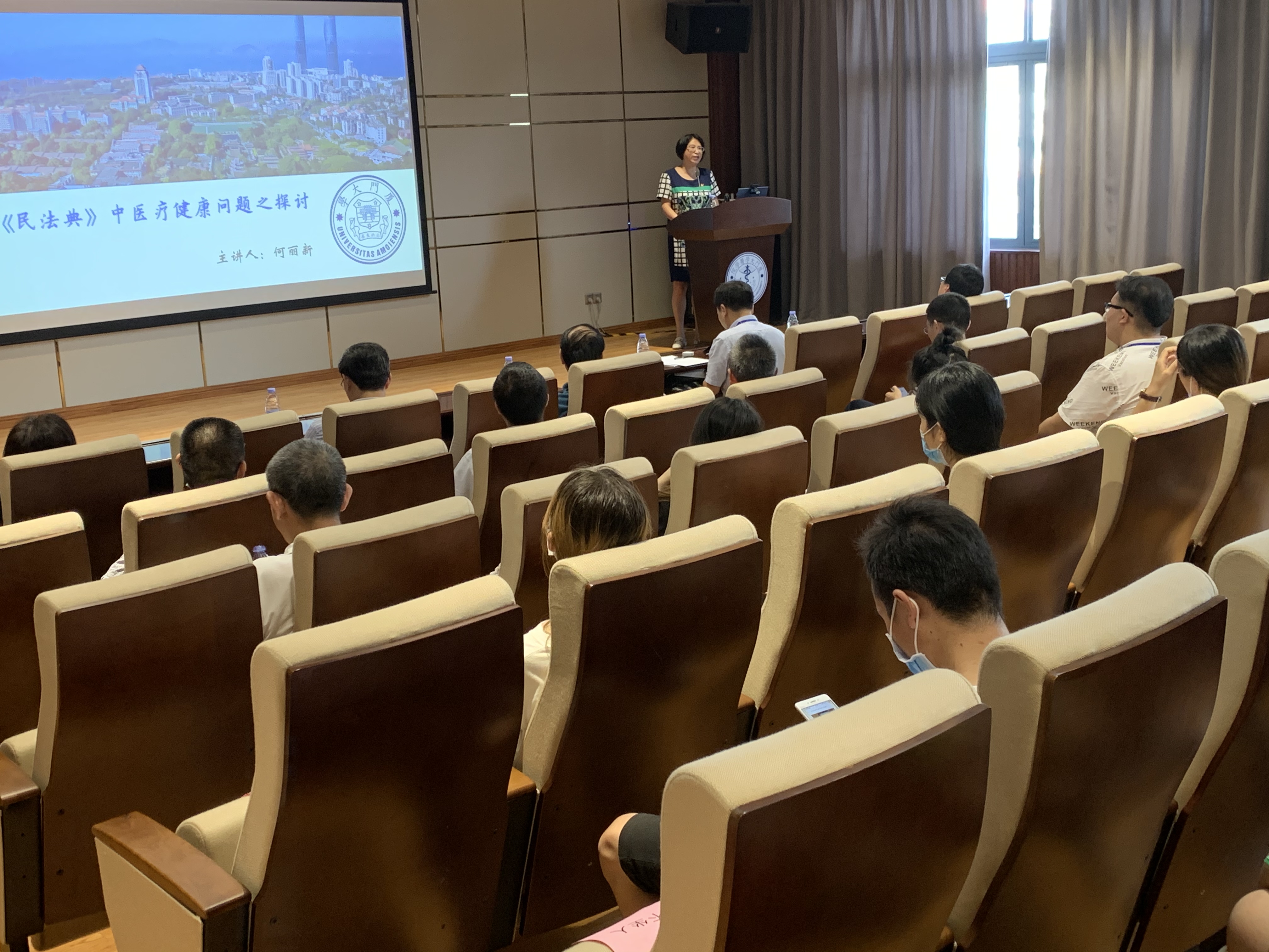 本次讲座邀请到了党委党校副校长何丽新教授主讲。何老师围绕《< 民法典>中医疗健康问题之探讨》这一主题,从《民法典》的基本情况概览、《民法典》总则编中的医疗健康问题、《民法典》人格权编中的医疗健康问题及侵权责任编中的医疗健康问题展开,引经据典、以案说法、深入浅出,为参与师生的工作学习及生活提了醒、敲了钟,具有较强的现实指导意义。