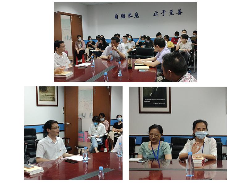 接着邱彦老师回顾了南昌起义的历史背景和建党初期的艰难岁月,认为要通过深化大学习来提高自觉性和坚定的信仰;廖怿老师认为“大学习”中的“大”指学习覆盖面广且学习要有深度,“精气神”不仅要从外界来,更重要的是从自己的内心来;胡皎月老师认为此次疫情对医务工作者今后向民众科普推广提出了新的要求;2017级博士生陈超、2018级硕士季春燕、2019级硕士生徐森楠依次分享自己参加党课学习的感受,他们认为医务工作并不仅仅是一份谋生的职业,更是一种实现人生自我价值的职业信仰,号召所有学生时刻牢记自己党员身份,在国家和人民需要的时刻不畏牺牲、冲锋在前。