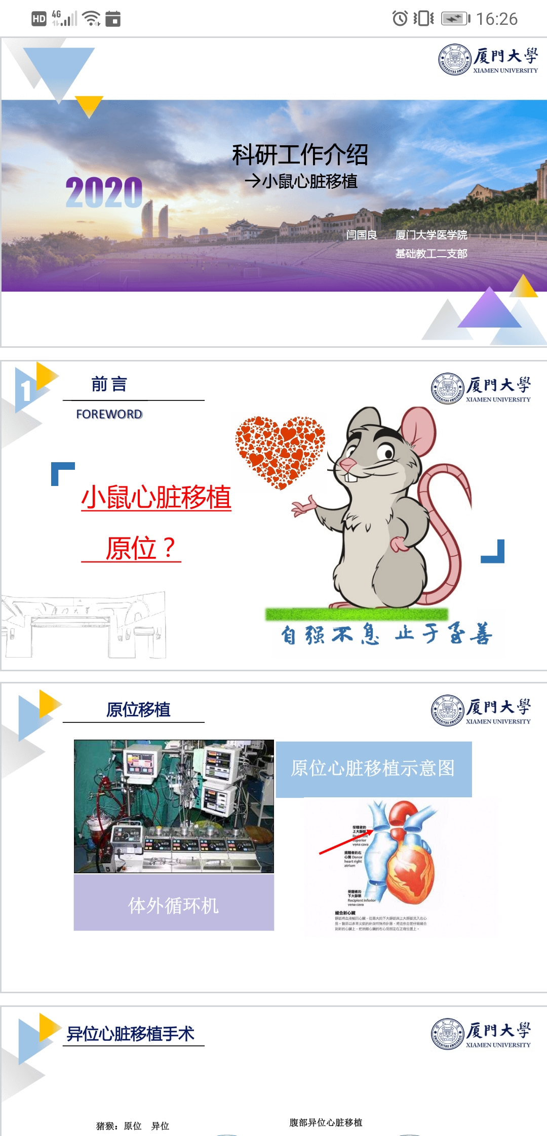 首先,新加入基础教工二支部的医OD(中国)党委副书记何丽苹同志围绕我院本科生思想政治学习、科技创新实践以及文体志愿活动等方面开展的工作向支部党员做了详细的介绍,让支部党员老师对我院本科生的教育工作有了更深入更全面的了解,并为支部与本科生党支部新学期拟开展的共建立项活动“师生支部共建,锤炼师德师风”提供了很多可供参考和借鉴的活动信息和资源。随后,周宇老师介绍了拟开展的支部共建活动的具体内容如“医路奋斗”主题师生交流活动,师生党员结队子帮扶学习困难学生等,并将结合本支部新学年开展的“党员自选主题分享30分”活动,拟选取精彩的支部党员演讲主题定期在我院学生宿舍园区的“一站式共享空间”开展面向我院本科生的教学和科研相关讲座活动,促进师生的交流。最后,支部党员闫国良老师通过PPT讲解、视频播放等形式做了题为“心脏移植动物模型介绍”的主题分享活动,分享了其十多年来做动物心脏移植手术的经验和收获,获得了支部全体党员的一致好评。