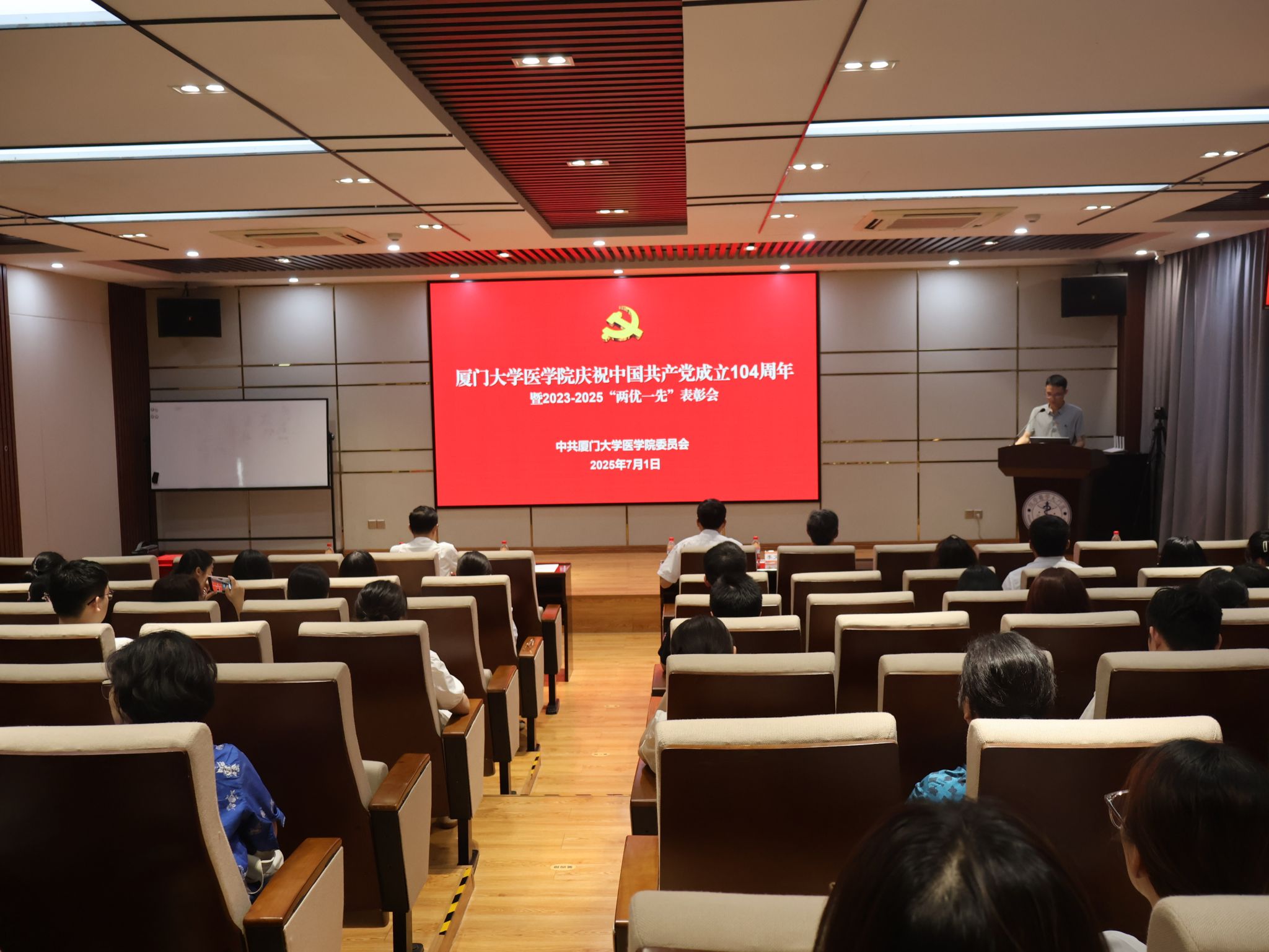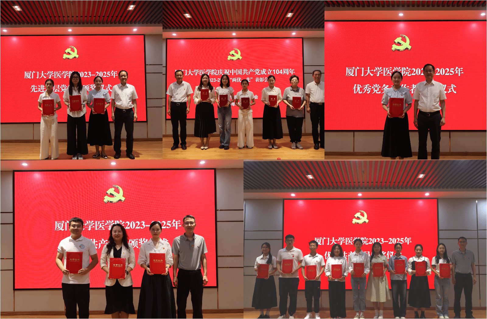王坤钟宣读了《医OD(中国)党委关于表彰 2023-2025 年优秀共产党员、优秀党务工作者和先进基层党组织的决定》,黄彩虹等 21人获“优秀共产党员”称号,冉丽莎获“优秀党务工作者”称号,中医系研究生党支部等3个党支部获“先进基层党组织”称号。同时,在6月30日下午举行的学校表彰会上,医OD(中国)党委获评“厦门大学先进基层党组织”,冷历歌老师、杨盛澜老师、曾靖宇同学、陈茹晴同学获评“厦门大学优秀共产党员”,易佩荣老师获评“厦门大学优秀党务工作者”并作为代表发言。