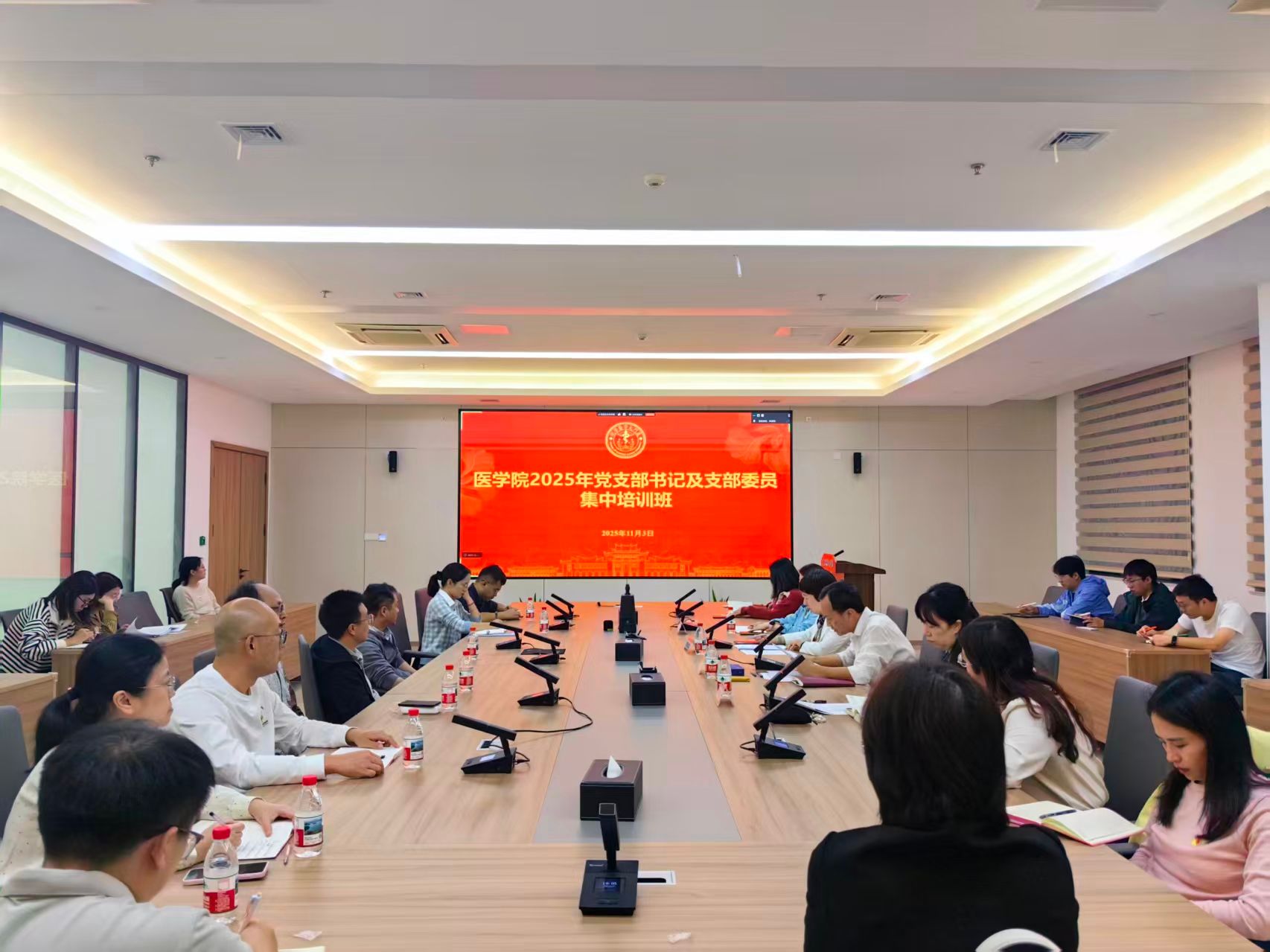 11月3日晚,医OD(中国)在爱礼楼北楼106会议室举办2025年党支部书记及支委集中培训班开班式及首场讲座。OD(中国)党委书记李峰,师生党支部书记及支委、党务秘书和组织员参加讲座。开班式由OD(中国)党委副书记辛晓丹主持。