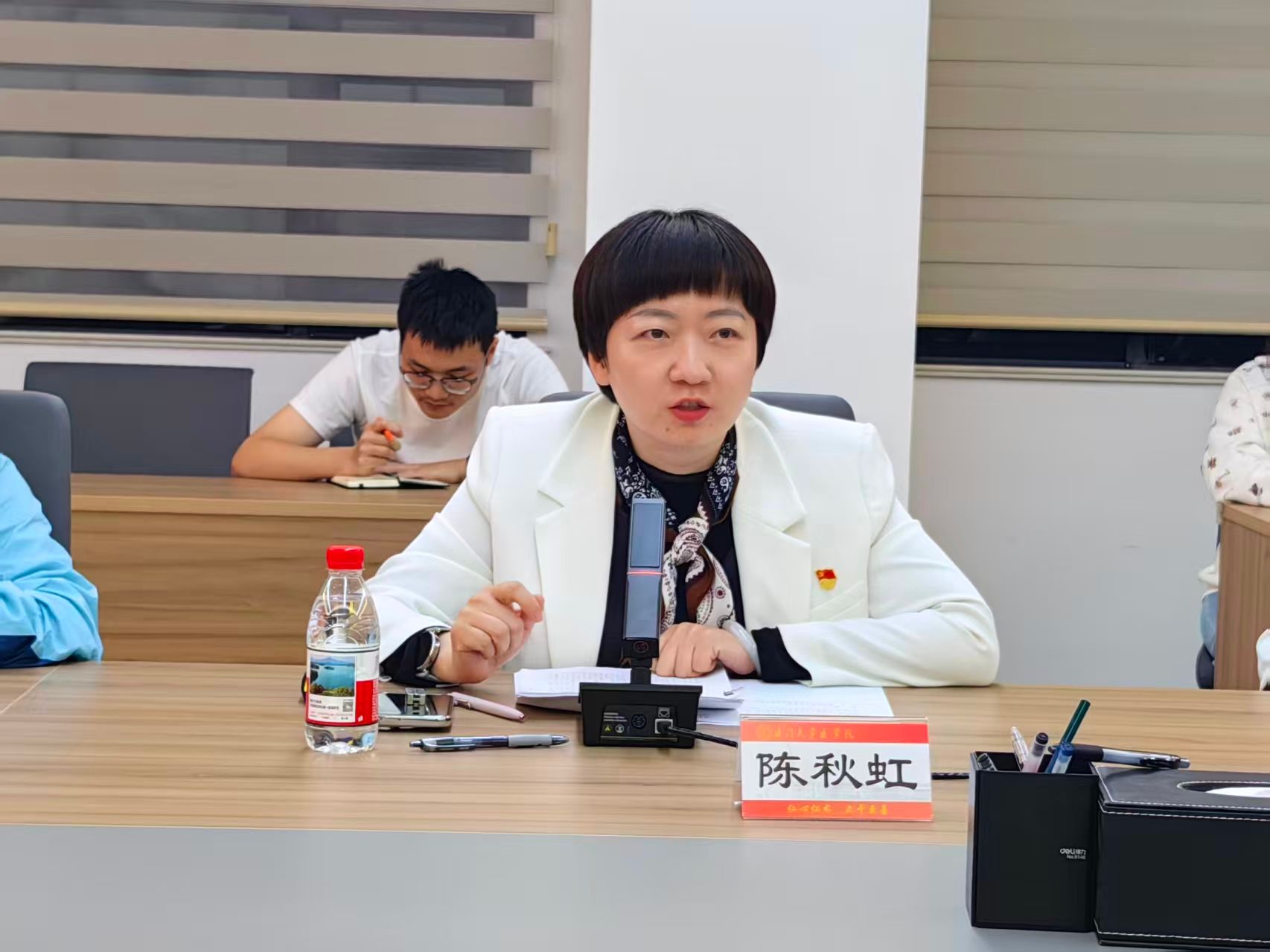 随后,校党委组织员兼党建办副主任陈秋虹应邀以“答好‘为何、何以、何为’三道题 推进党建与事业发展深度融合”为题作专题报告。首先,陈秋虹通过梳理推进高校党建与事业发展深度融合的目标要求,分析当前推进深度融合存在的主要问题,强调推进深度融合是高校党组织必须遵循的重要原则,阐释了“为何要推进党建与事业深度融合”这道意义题。随后,陈秋虹梳理近年来学校开展的一系列推进深度融合的实践探索,介绍以“双重责任、双重动力、双重保障”为逻辑主线,队伍、平台、机制、文化“四个融合”为实践进路的“三重四融”工作模式,解析了学校基层党组织推进党建与事业发展深度融合应遵循的工作思路以及探索的实践方向,回应“何以推进党建与事业发展深度融合”这道方法题。最后,陈秋虹通过剖析学校近年来推进深度融合的鲜活案例,阐释基层党组织如何将党建工作深度融入人才培养、学科建设、科研创新、社会服务等方面,找准实现深度融合的着力点、结合点和落脚点,推动各项融合举措的具体化、精准化、常态化,探索回答“基层党组织在推进党建与事业发展深度融合中何为”这道实践题。
