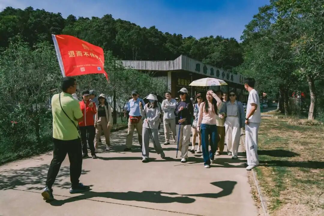 抵达山顶,漫山秋色尽收眼底。老同志们精神矍铄,与年轻学子并肩而立,共同定格美好瞬间。镜头里,老同志们的笑容温暖从容,年轻党员的眼神满含敬佩——这一帧画面,不仅记录了秋日的绚烂,更承载了集体中真挚的尊老之情与同辈之谊。