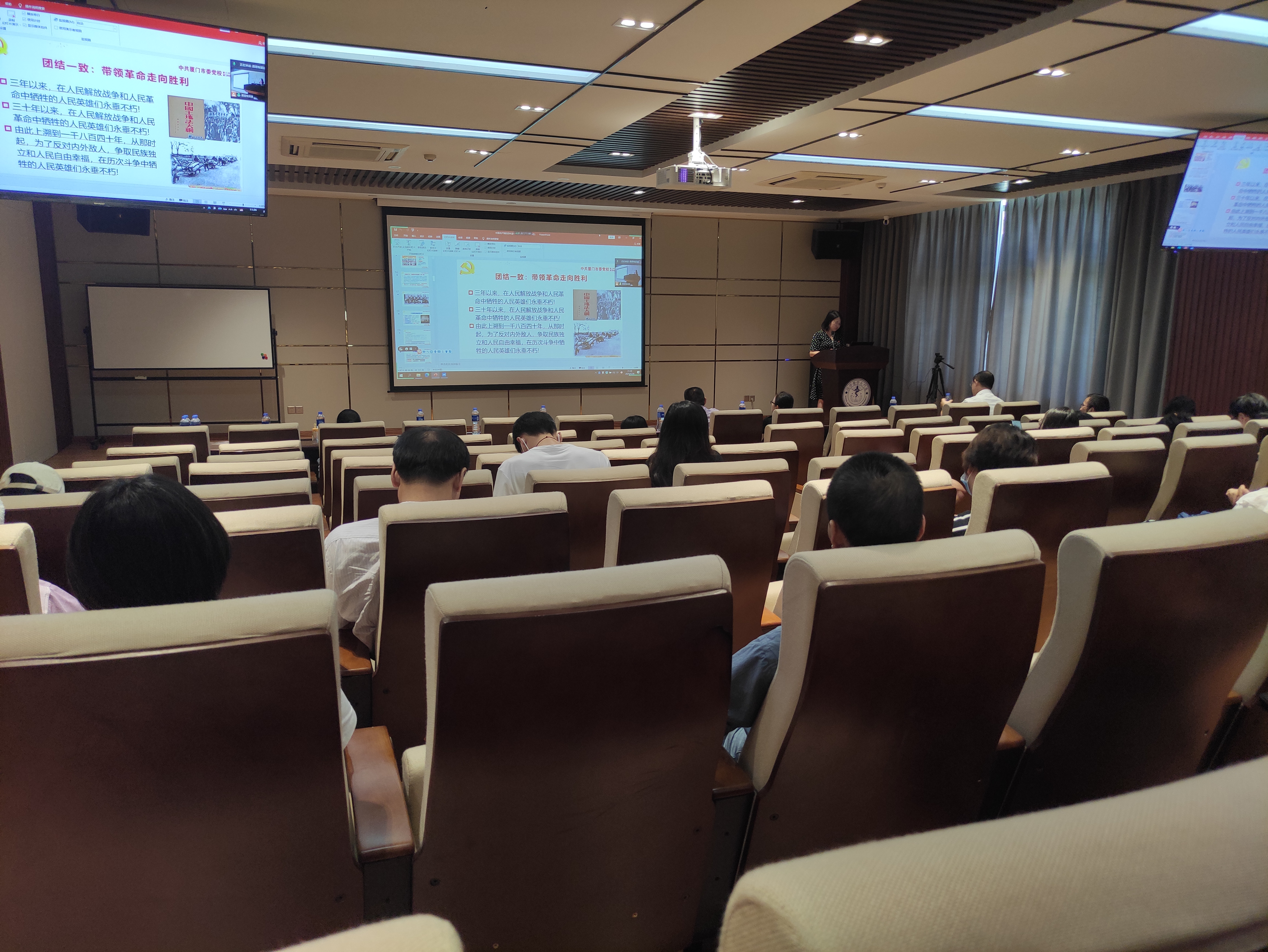 为深入学习贯彻习近平新时代中国特色社会主义思想,从党的百年伟大奋斗历程中汲取继续前进的智慧和力量,5月28日上午,医学与生命科学学部于成义楼102报告厅开展党史学习教育专题辅导报告会。本次报告会邀请了厦门市委党校党史党建教研部主任牛君教授,报告主题为《百年风雨话沧桑——中国共产党百年奋斗历程与启示》。医OD(中国)、生命科学OD(中国)、公共卫生OD(中国)、翔安医院党政班子成员和部分师生党员参与本次报告会。报告开设线上同步直播,部分师生党员线上参会。会议由医OD(中国)党委副书记何丽苹主持。