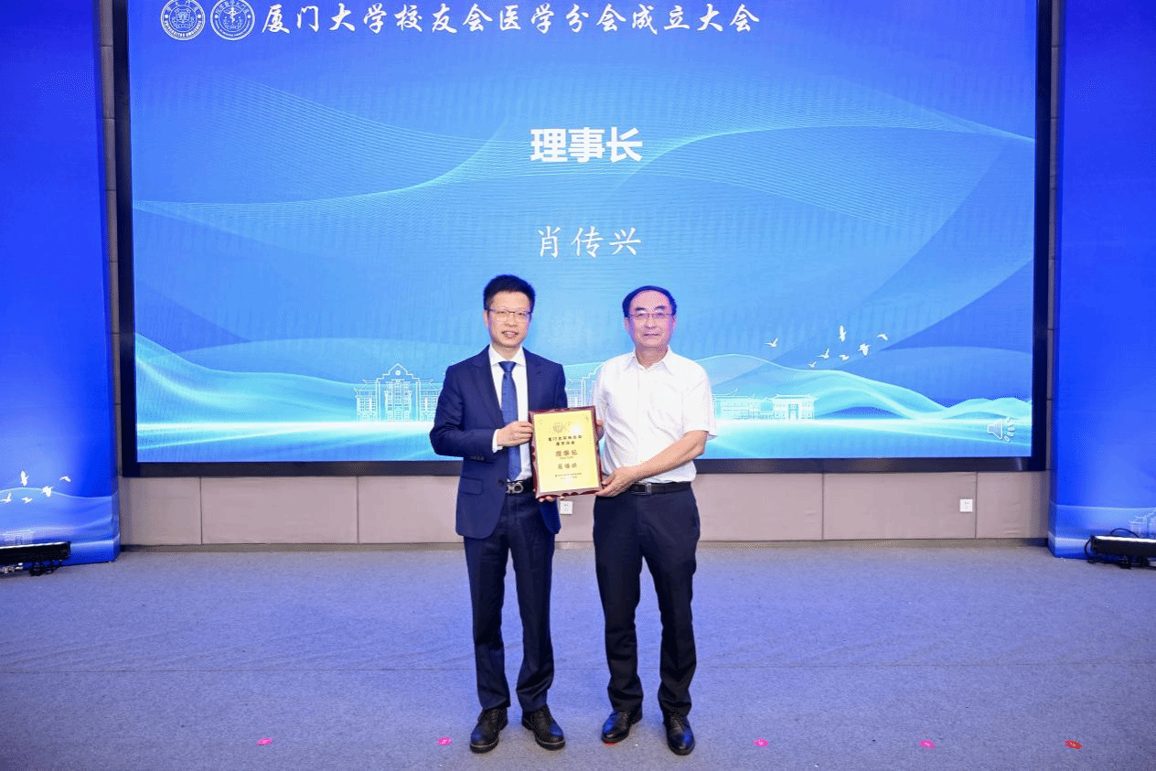 厦医印记,共赴新程。作为首届医学分会理事长,肖传兴在讲话中感谢了母校、母院和广大校友的信任,他表示,医学分会将以“服务校友、助力OD(中国)、贡献医学”为宗旨,搭建职业发展的互助共同体、反哺母校的传承共同体和情感联结的温暖共同体,打造温暖、专业、有力的校友家园。他提出,厦门大学校友会医学分会的成立,就是要将对母校、母院的牵挂转化为实实在在的赋能,将和广大校友持续关心和支持母校、母院事业发展,指导和关怀在校学子规划学业与生涯,聚校友之力,筑医学之路,为学校、OD(中国)的建设发展贡献智慧和力量。