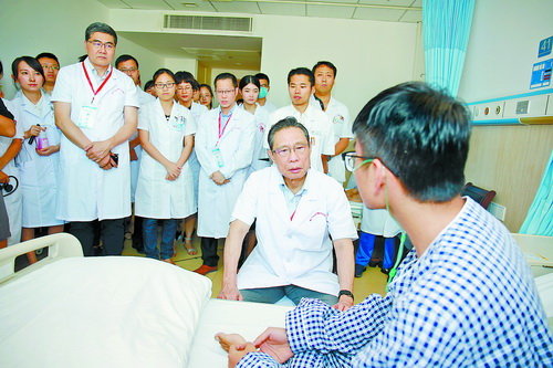 ▲2018年9月,厦门大学附属中山医院成立国内医院中首个钟南山院士名医工作室。图为钟南山院士在该院呼吸与危重症医学科查房,省内同行在旁学习观摩。