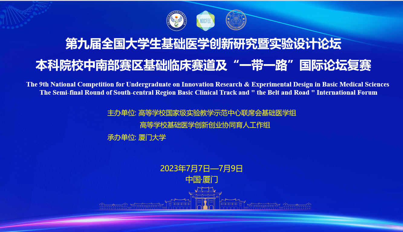 7月9日,由高等学校国家级实验教学示范中心联席会基础医学组、高等学校基础医学创新创业协同育人工作组主办,厦门大学承办的第九届全国大学生基础医学创新研究暨实验设计论坛本科院校中南部赛区基础临床赛道及“一带一路”国际论坛复赛圆满落幕。