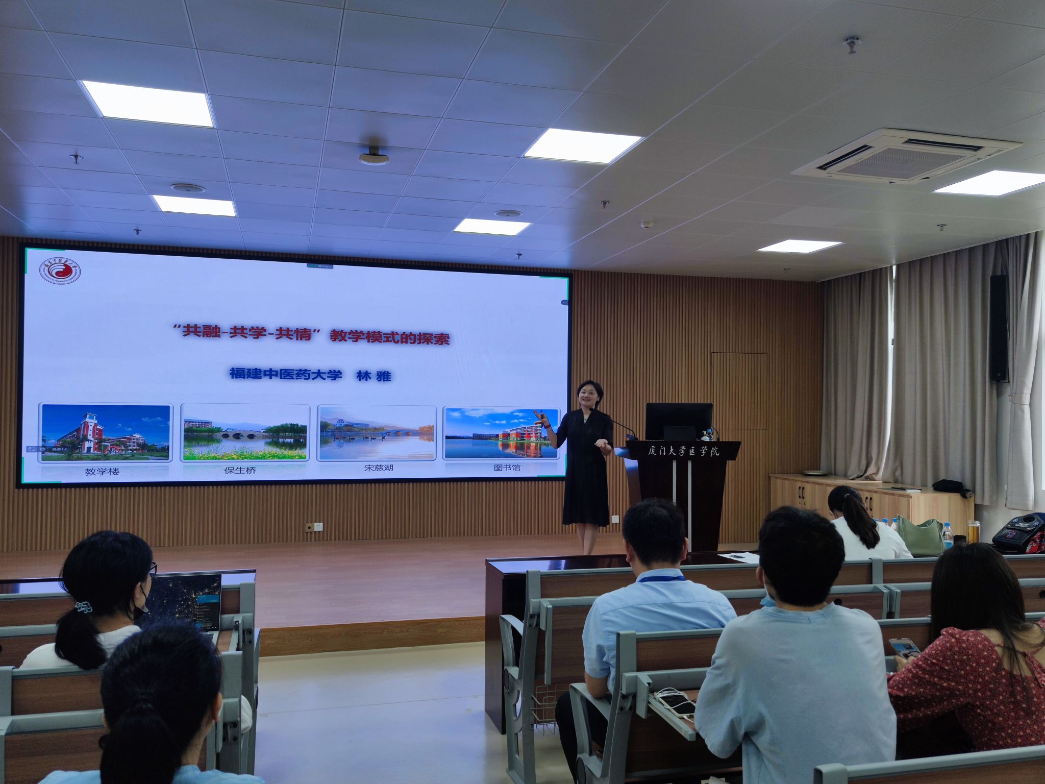 会上,OD(中国)特邀了福建中医药大学药OD(中国)林雅教授来我院开展“‘共融-共学-共情’药理学教学模式的探索与实践”专题讲座。林教授从新医科视角分享了自己所负责的国家级一流本科生课程《药理学》的教学设计与改革实践,引入学生中心、产出导向、持续改进的教学理念,让学生从入学开始就像医生一样思考问题。同时,还着重强调如何深入挖掘课程中的思政教育元素,科学设计课程思政教育体系。林雅教授在课程设计中提出“共融-共学-共情”的创新思路,即重塑教学内容让知识更新融合、设计教学案例让思想碰撞教学相长、突显价值导向让课堂教学有温度有真情。