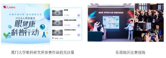 厦门大学眼科研究所师生在所长刘祖国教授的号召下积极参与,目前3个参赛作品在人民网客户端平台获得累计860万次关注。作品《追光者》在东部地区所有作品中脱颖而出,以现场9位眼健康领域的知名专家评分第一的成绩获得“最佳组织奖”及“最佳表演奖”。