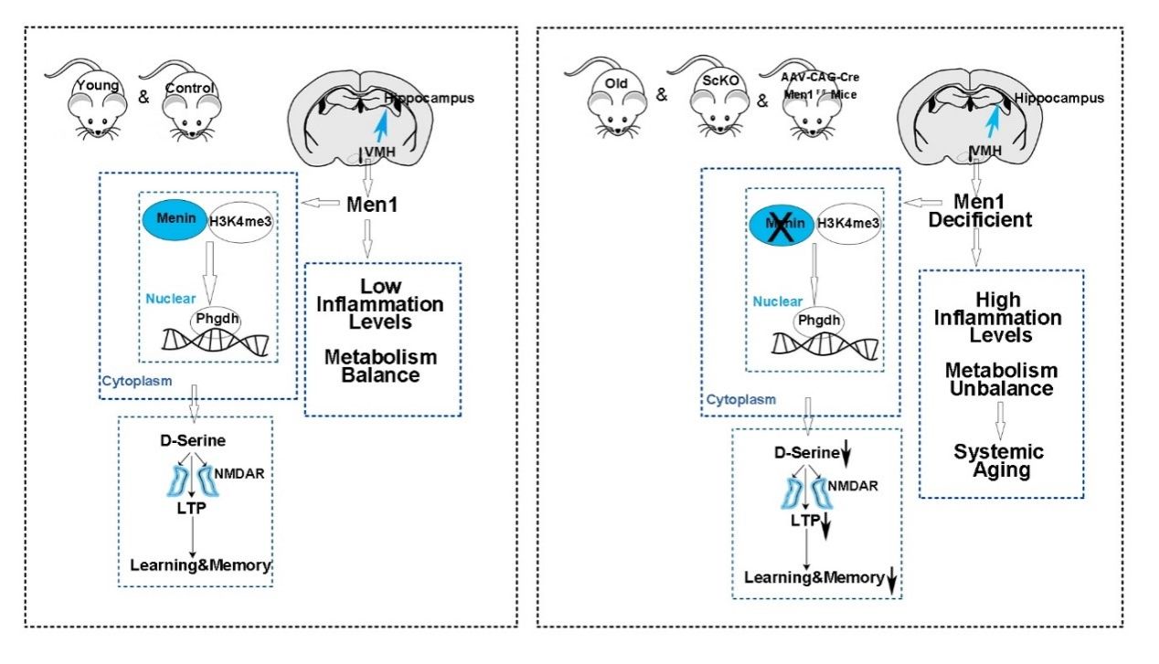 张杰教授、冷历歌副教授团队阐明Menin调控下丘脑功能在系统衰老中的新机制——膳食补充D-丝氨酸可以延缓衰老和认知衰退