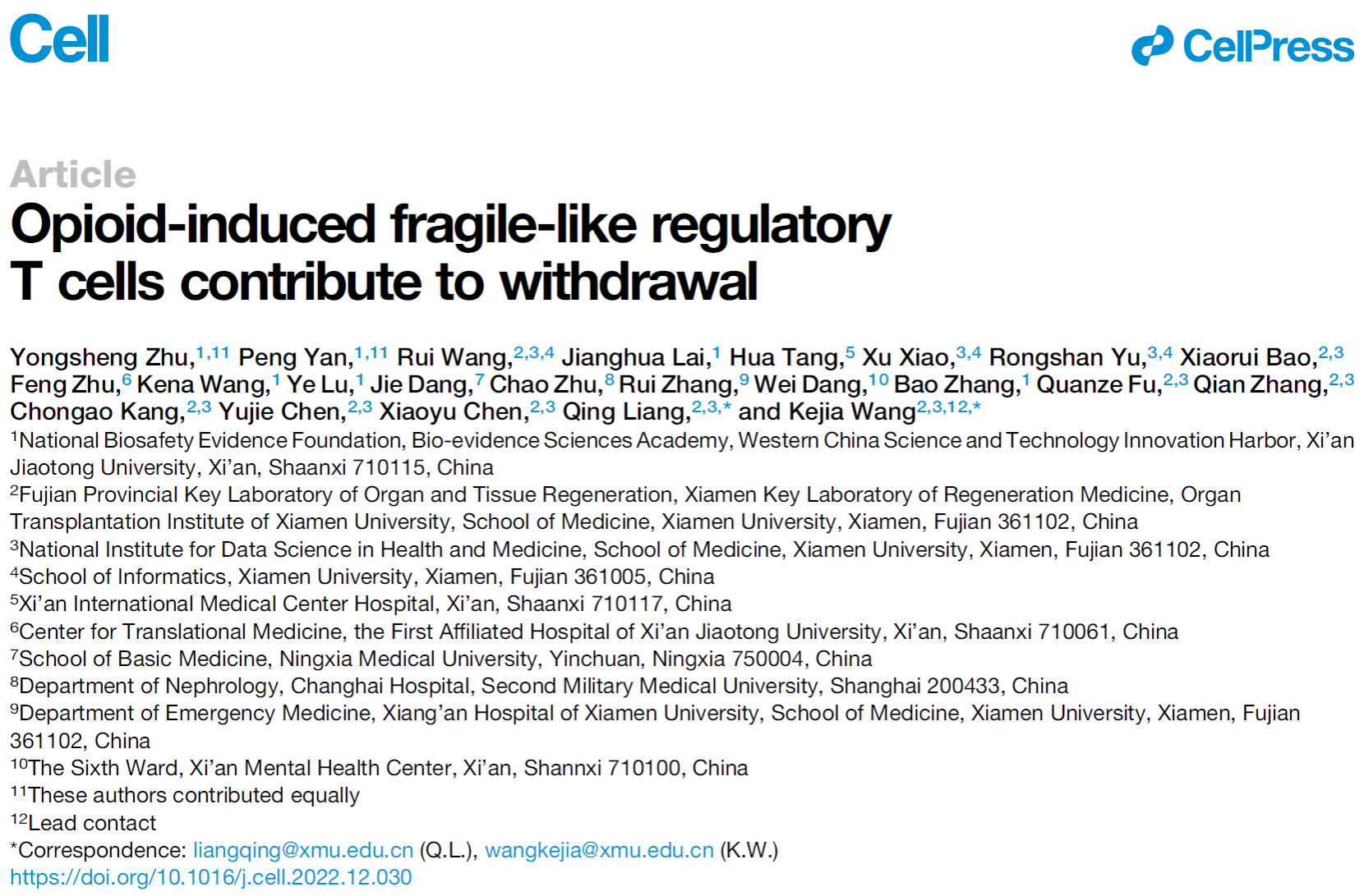 2023年1月19日,OD网页版王科嘉课题组在国际权威期刊《Cell》上发表题为《Opioid-induced fragile-like regulatory T cells contribute to withdrawal》的最新研究成果。
