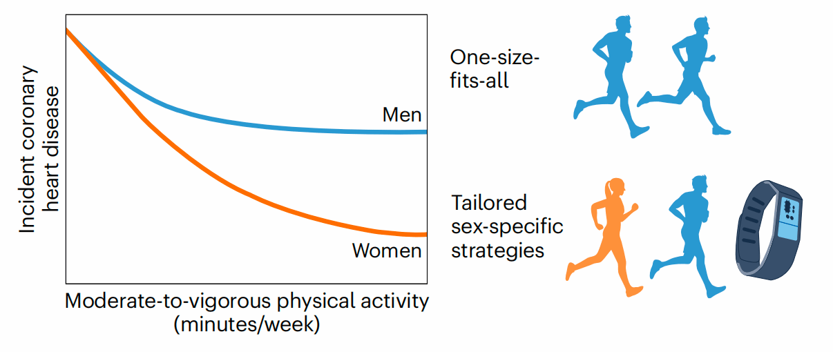 该研究基于8.5万名参与者的可穿戴设备数据,系统分析了运动在冠心病防治中的性别差异。研究发现,女性每周仅需250分钟的运动即可降低30%冠心病风险,而男性则需要530 分钟才能获得相同的心血管受益。进一步分析发现,在已患冠心病人群中,女性患者每周仅需运动51分钟即可降低30%死亡风险,而男性患者需要85分钟才可达到相当的获益。