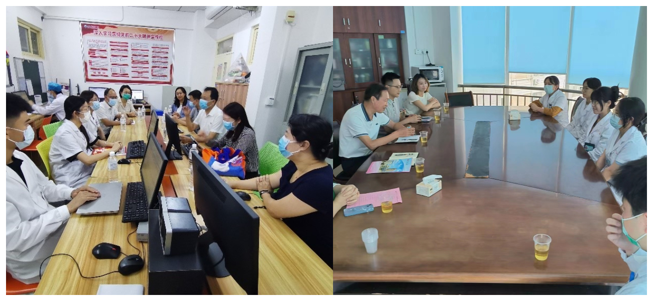 附属厦门眼科中心介绍了专硕培养的情况。薛茂强对眼科中心在专硕培养方面的工作表示肯定,就提升规培考试通过率等内容,和与会人员展开交流讨论。