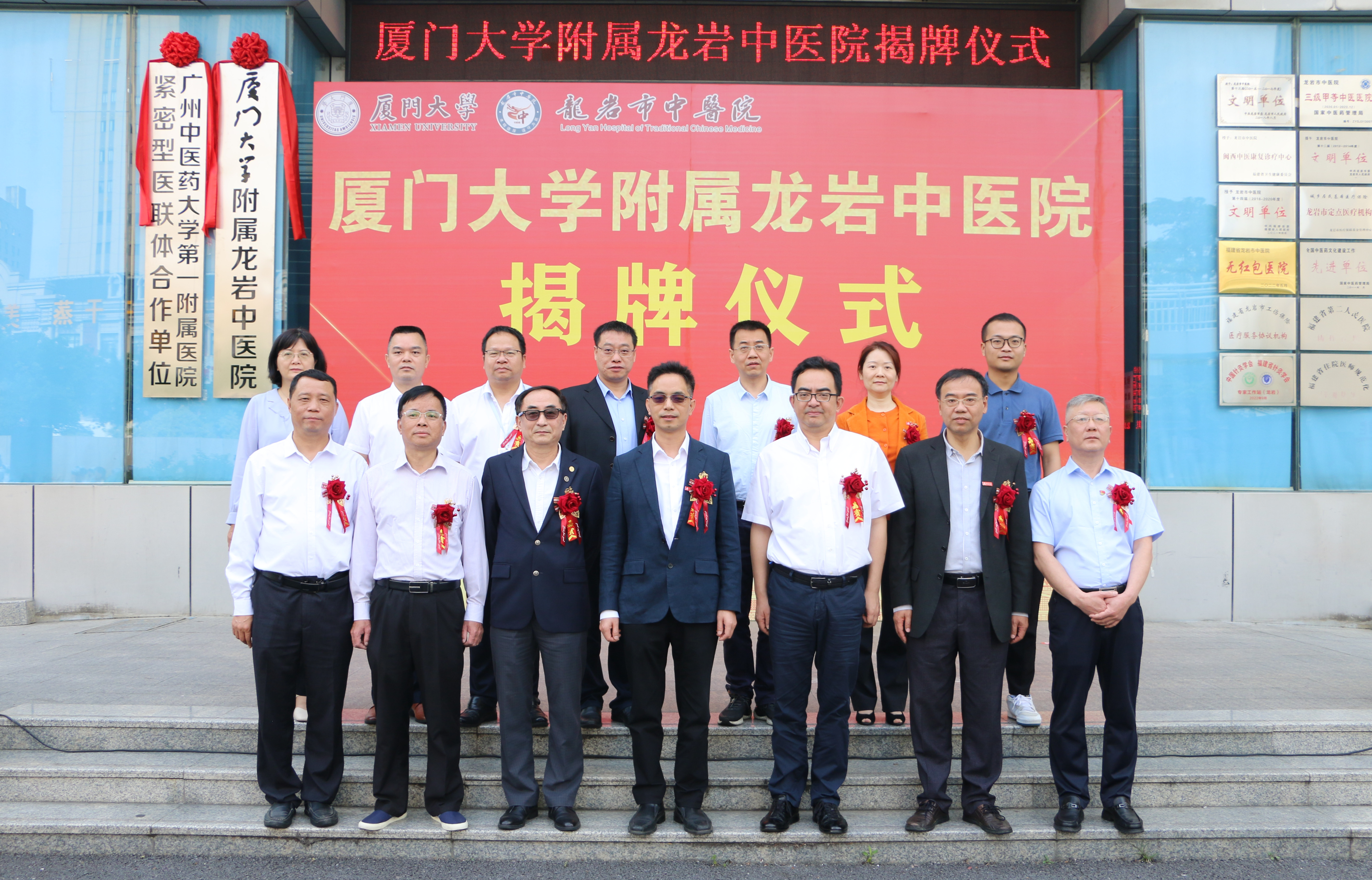周大旺副校长、韩家淮院士、杨溢部长、龙岩市中医院郭伟院长共同为厦门大学附属龙岩中医院揭牌。