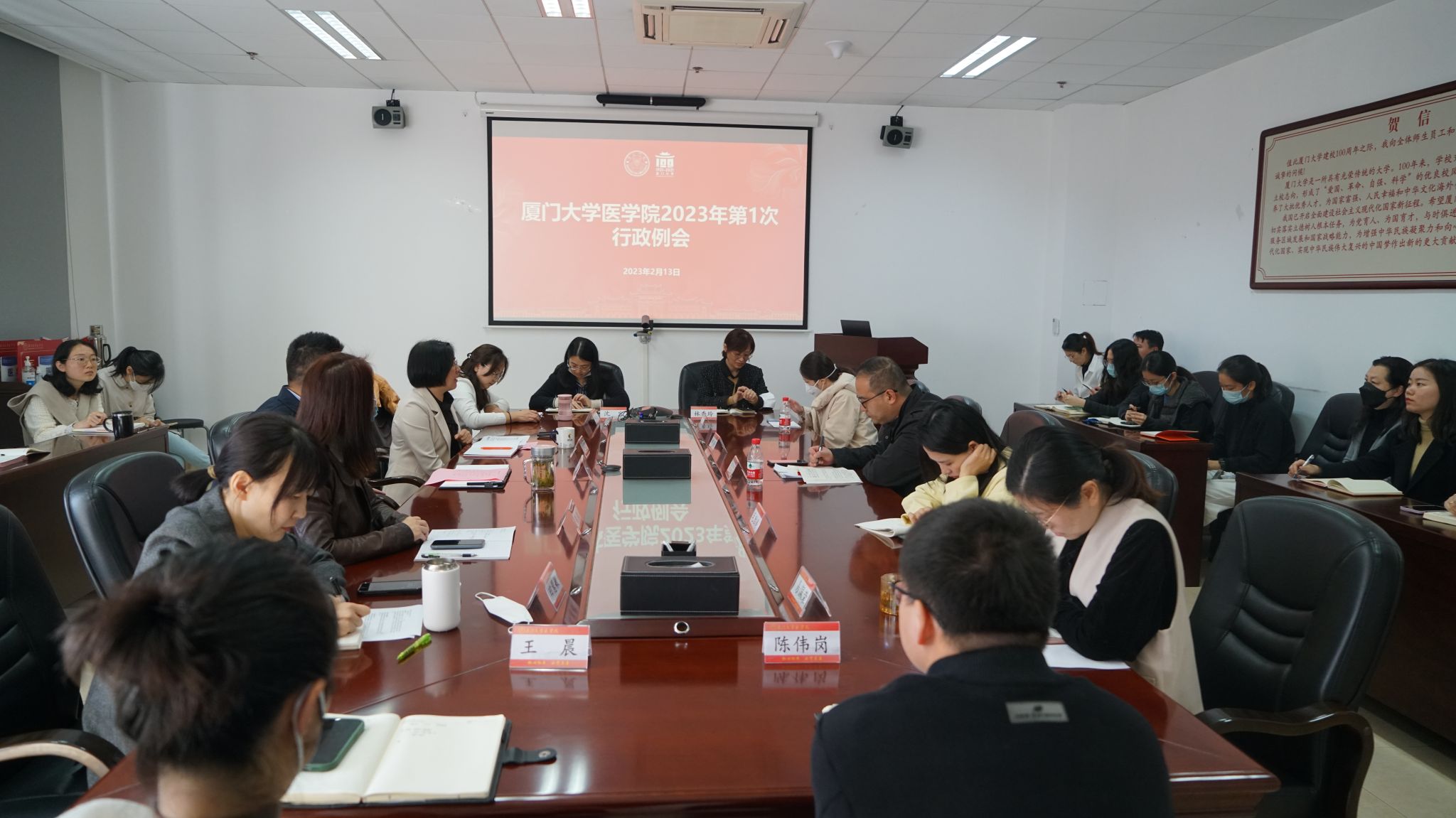 2月13日上午,医OD(中国)在爱礼楼103召开新学期行政工作会议,院党委书记陈怀锋、副院长谢莉萍及OD(中国)行政全体人员参加了会议。会议由办公室主任尹青萍主持。