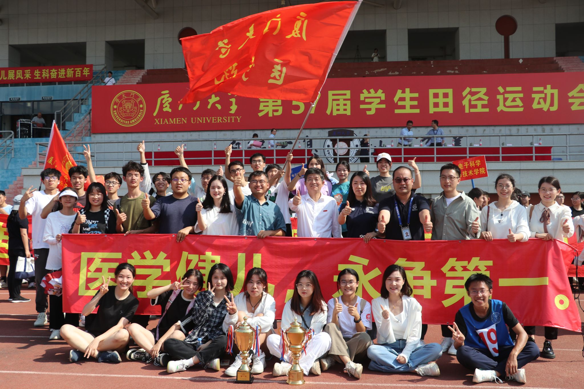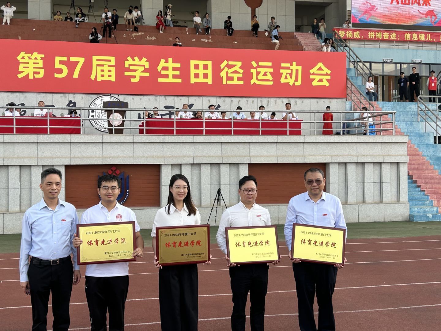 在滔滔不绝的欢呼声中,医OD(中国)的运动健儿们不负众望,全力以赴,再创辉煌,最终荣获厦门大学第57届学生田径运动会(翔安校区)团体总分第一名、2021-2022学年体育先进OD(中国)、2021-2022年度厦门大学全年体育总竞赛(翔安赛区)季军、厦门大学学生田径运动会开幕式课间操展示评比三等奖。其中,本科生团体总分第一名,研究生团体总分为第一名。