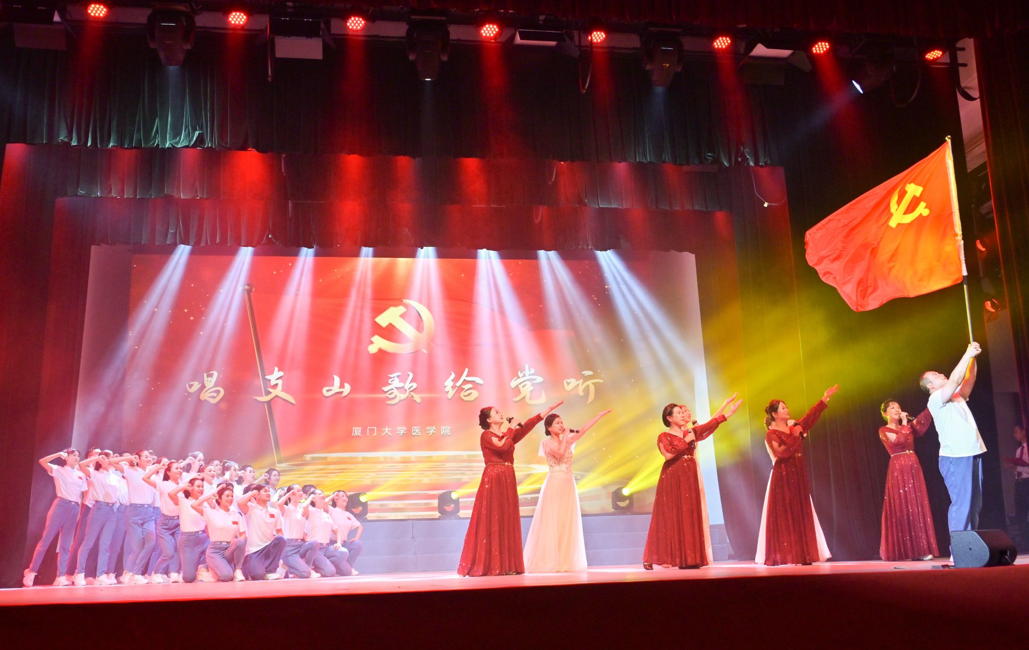2022年11月12-13日,厦门大学举行“礼赞二十大 建功新时代”教职工文艺汇演。医OD(中国)组织的38人表演团,在13日的演出中,第一个出场,以一首饱含深情的《唱支山歌给党听》、一段欢快激昂的舞蹈,赢得全场观众热烈的掌声,并最终荣获三等奖。