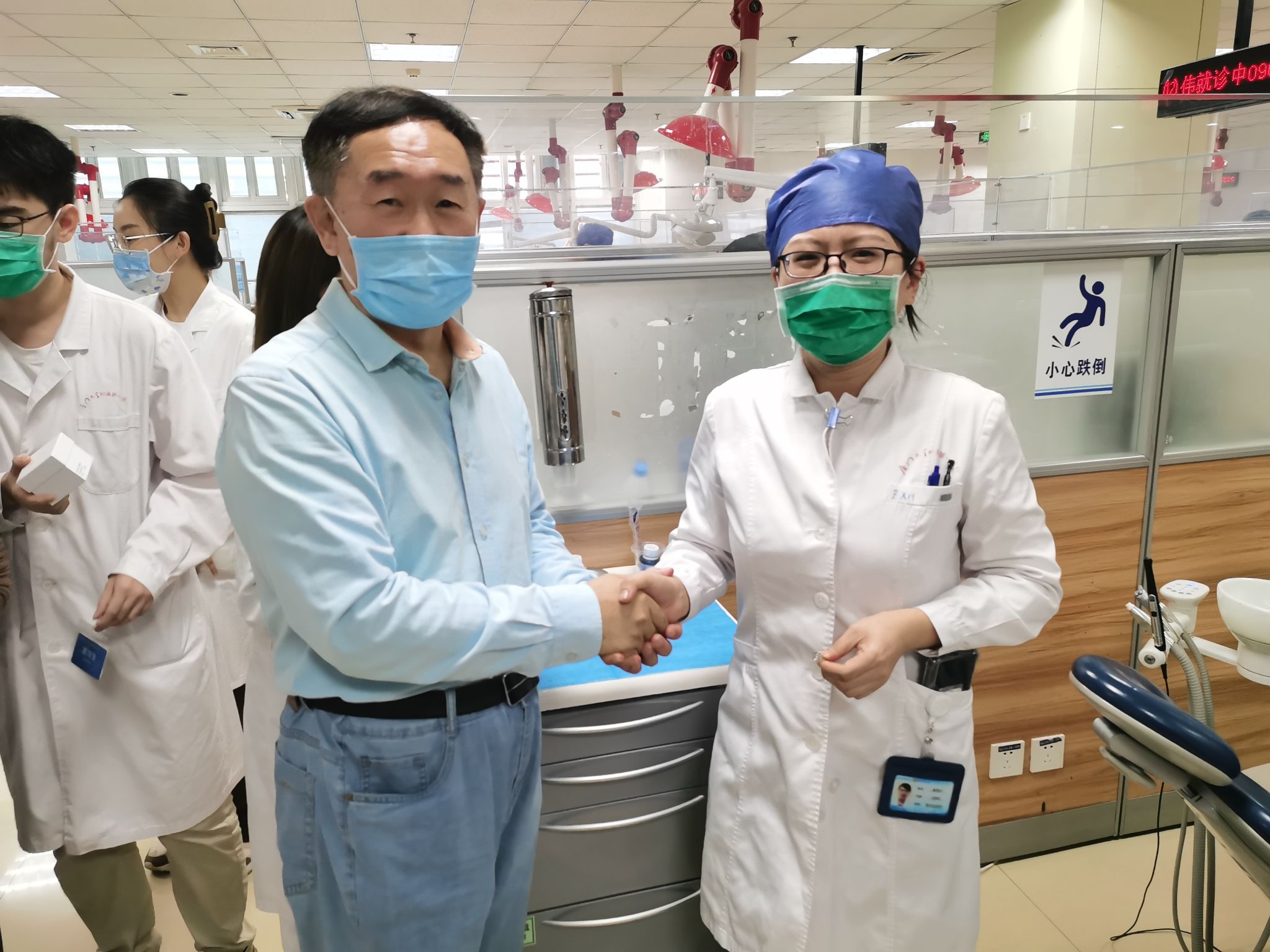 座谈结束后,滕老师还带队深入科室,一一看望因为有值班任务等原因而没有参加今年6月举行的首届毕业生欢送会的口腔临床医生们,为他们补发了专属定制礼物,以感谢他们对厦大医OD(中国)口腔医学专业教学工作的贡献。