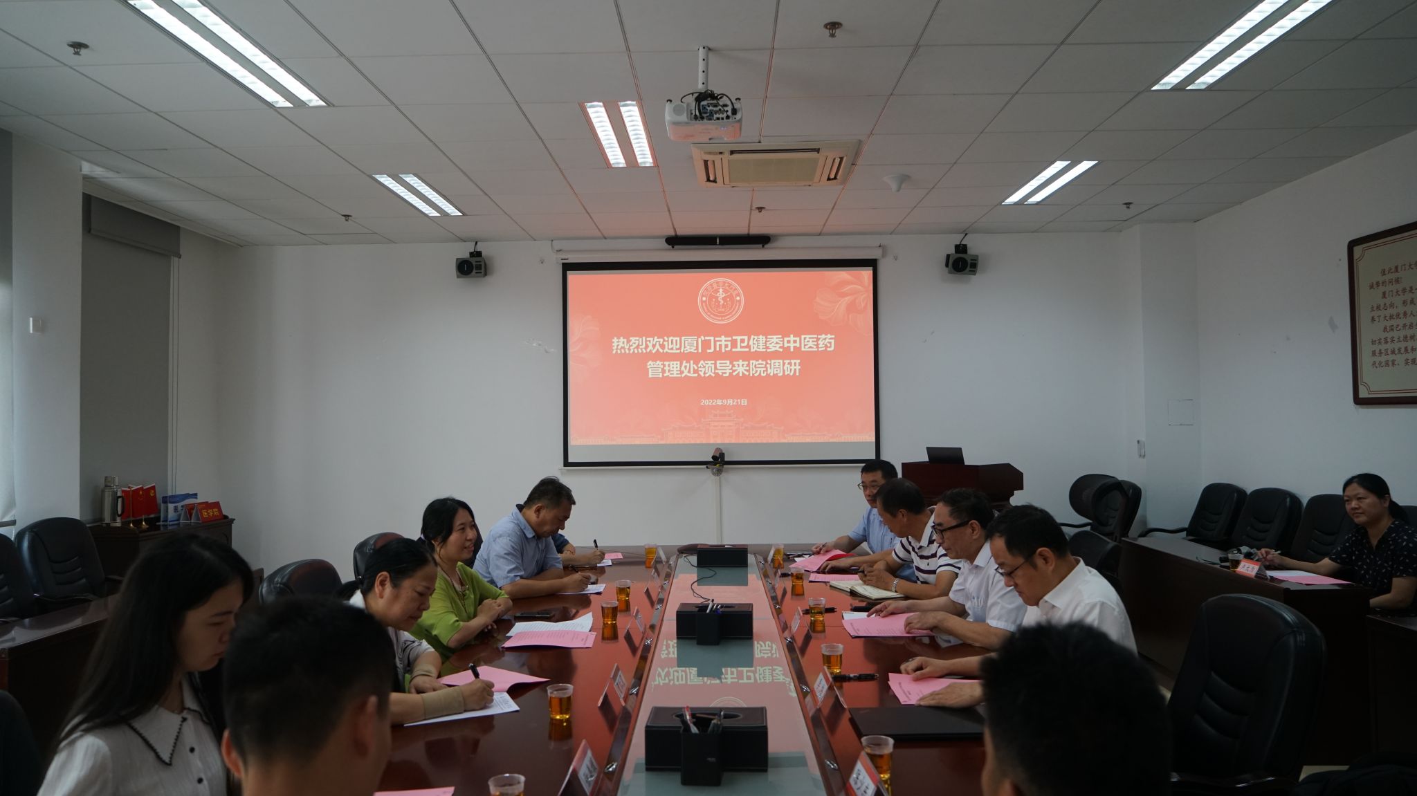 9月21日上午,厦门市卫健委中医药管理处吴康妮处长等一行6人到我院调研座谈。院长韩家淮、副院长薛茂强、李炜及中医系副主任文磊等出席了座谈会。