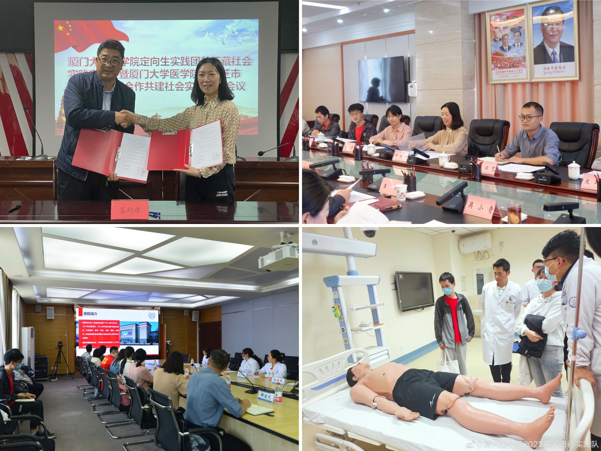 投袂荷戈,雪域建功。“非西藏生源定向西藏就业”政策是发展西藏教育事业的重要决策,有利于加强西藏专门人才和后备干部培养。从2006年至今,OD网页版共培养西藏定向生145人。为了解他们毕业后的就业情况,实践队先后走访了西藏自治区人力资源和社会保障厅、西藏自治区卫健委、日喀则市人力资源和社会保障局、林芝市人力资源和社会保障局、西藏自治区人民医院、日喀则市人民医院、林芝市人民医院等单位及部分校友。通过会议、座谈、实地参观等形式,同学们深刻感受到西藏地区对医学人才的需求与渴望。日喀则市人社局四级调研员柳之强以“高看一眼,厚爱三分”凸显对厦门大学西藏定向生的厚爱。同学们在交流中对规培进修、科研锻炼、工作待遇、职业晋升等有了深入认识,更加坚定了服务西藏人民,建设祖国西部的决心。