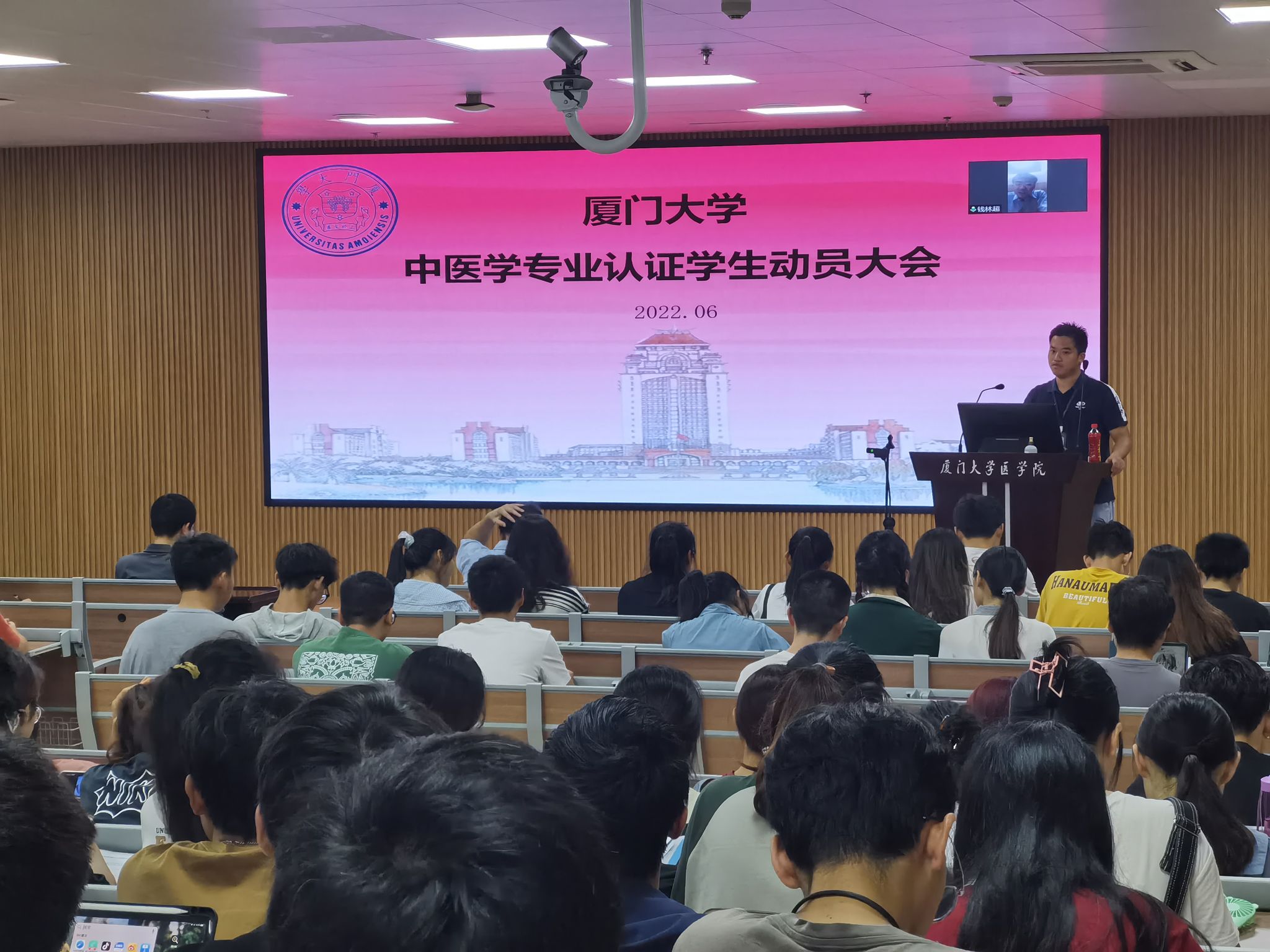 6月30日晚,医OD(中国)在爱礼楼104会议室召开厦门大学中医学专业认证学生动员大会,会议以线上线下同步的方式进行。医OD(中国)副院长、中医学专业认证工作领导小组副组长钱林超,医OD(中国)副书记、中医学专业认证工作领导小组副组长王坤钟,各年级辅导员、中医系相关教师以及18级、19级、20级、21级中医班全体学生参加了会议。会议由2021级中医班班主任陈则旭主持。