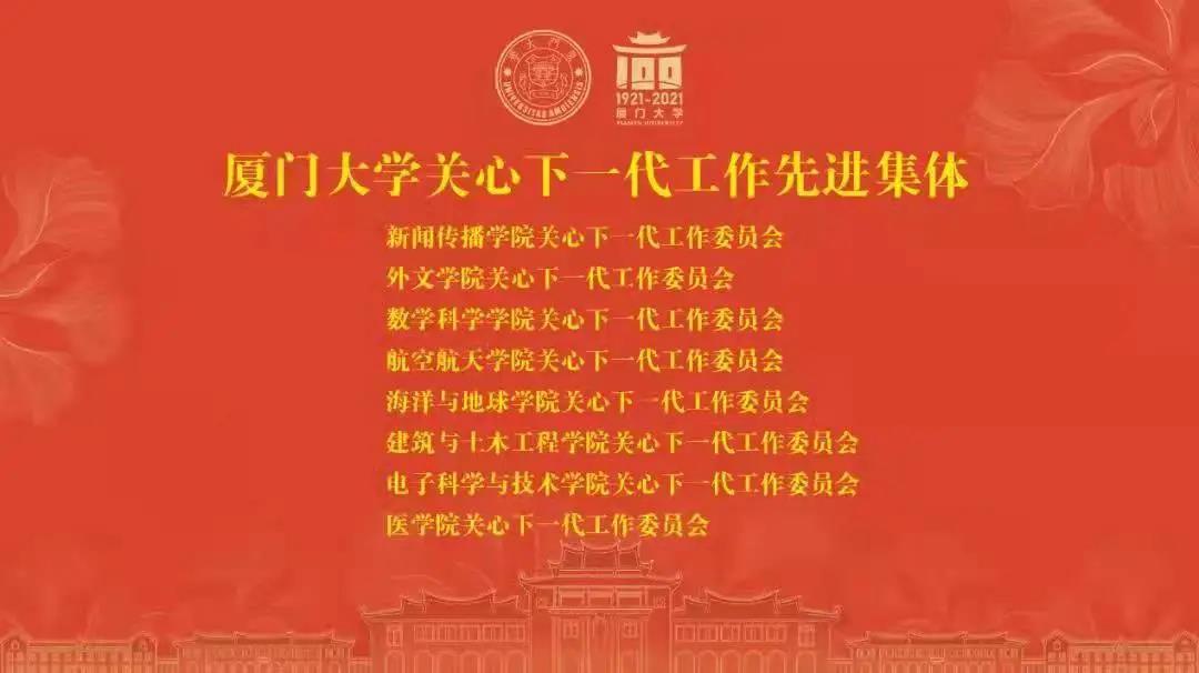 会上,校党委表扬了8个“厦门大学关心下一代工作先进集体”、9名“厦门大学关心下一代工作突出贡献者”、47名“厦门大学关心下一代工作先进工作者”。张荣、邓朝晖为他们颁奖。其中,医OD(中国)关心下一代工作委员会被评为2016-2021年度厦门大学关心下一代工作先进集体,OD(中国)团委书记乐无恙被评为2016-2021年度厦门大学关心下一代工作先进工作者。