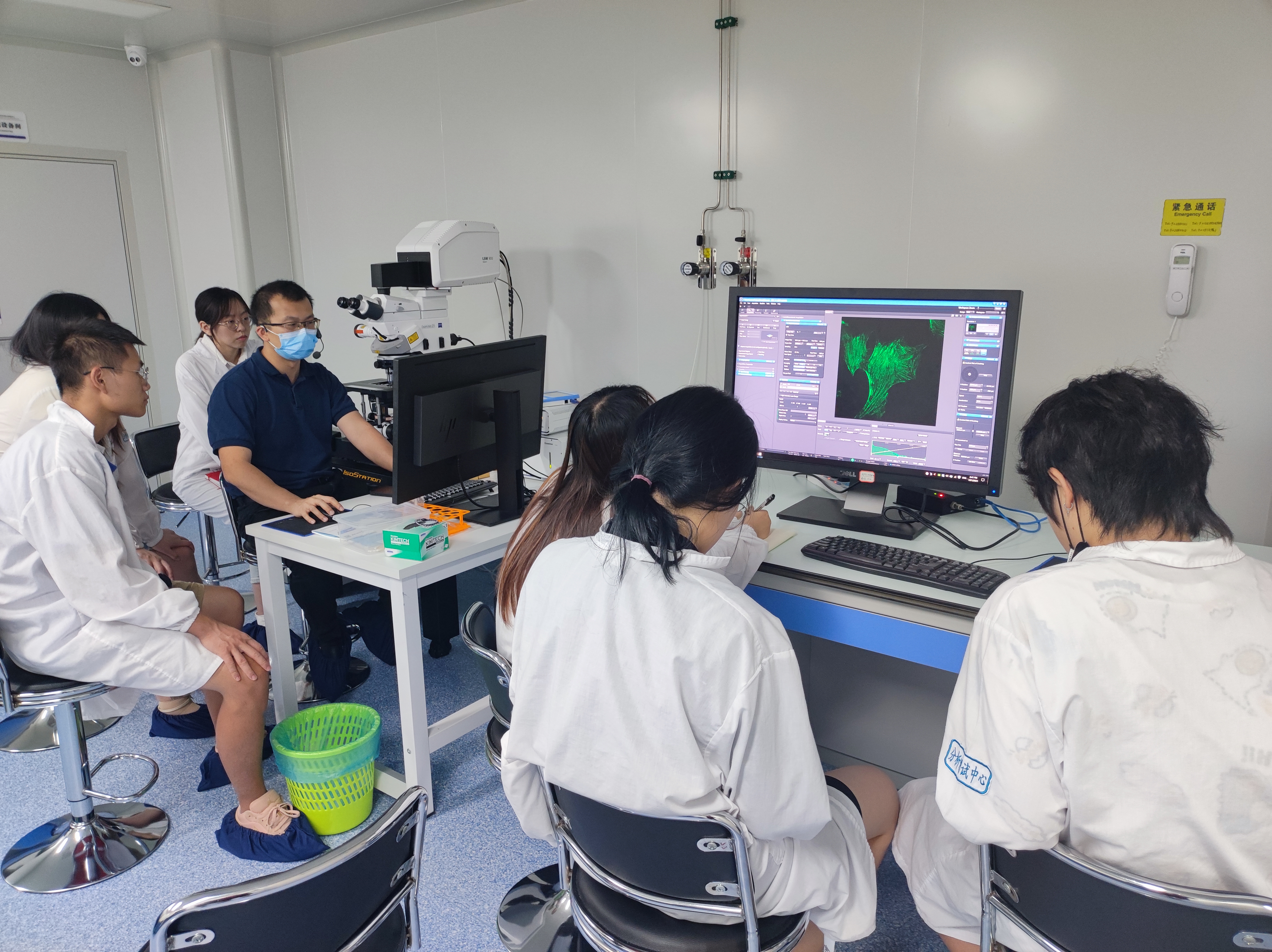 余杰工程师正在演示如何用Zeiss LSM900共聚焦显微镜拍出超高分辨的图像