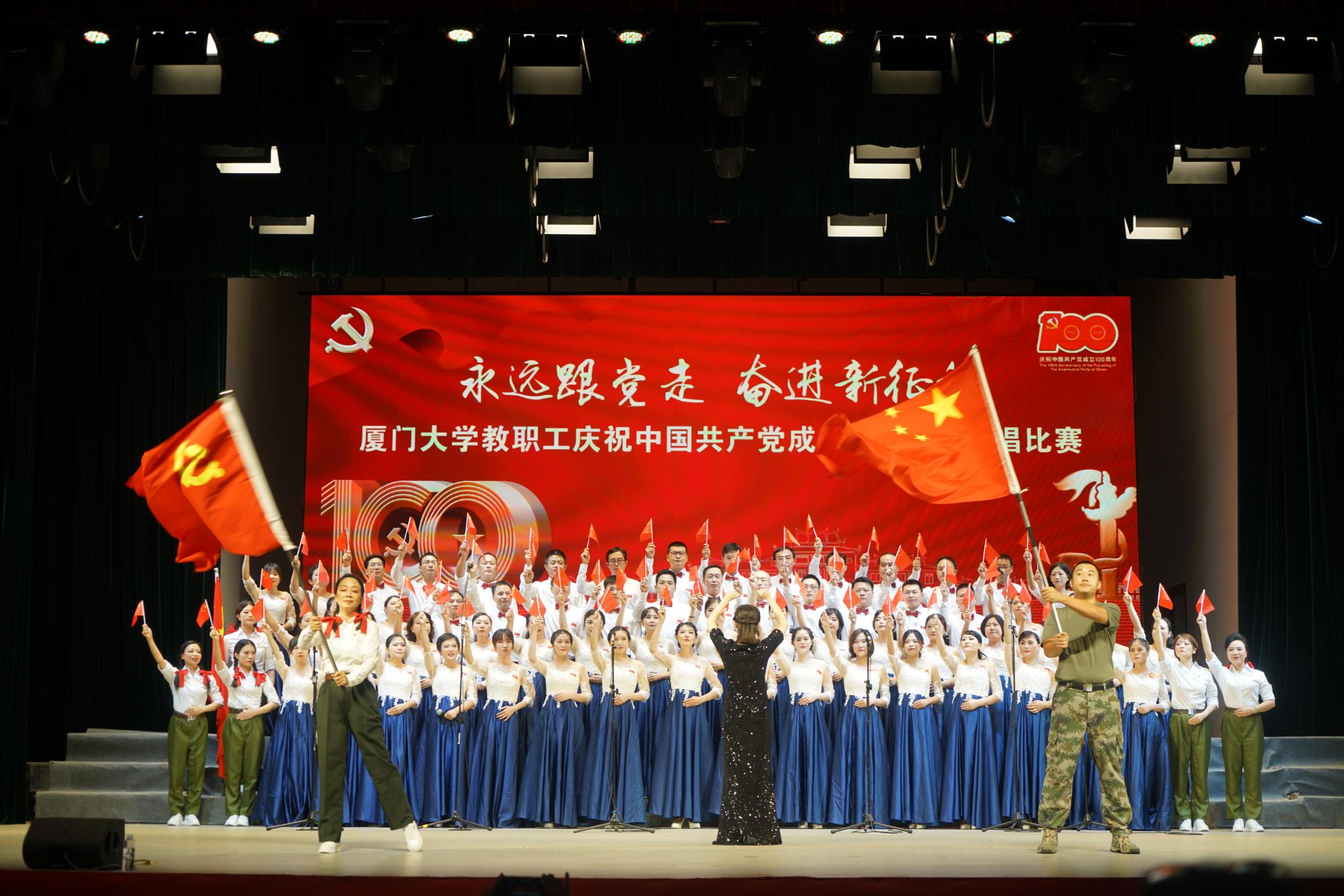 永远跟党走,奋进新征程。2021年6月26-27日,厦门大学举行教职工庆祝中国共产党成立100周年合唱比赛。医OD(中国)组织的70人合唱团,在27日的比赛中,第一个出场,以一首悠扬抒情的《歌唱祖国》、一首高亢激昂的《走向复兴》,获得全场观众热烈的掌声,最终荣获优胜奖。