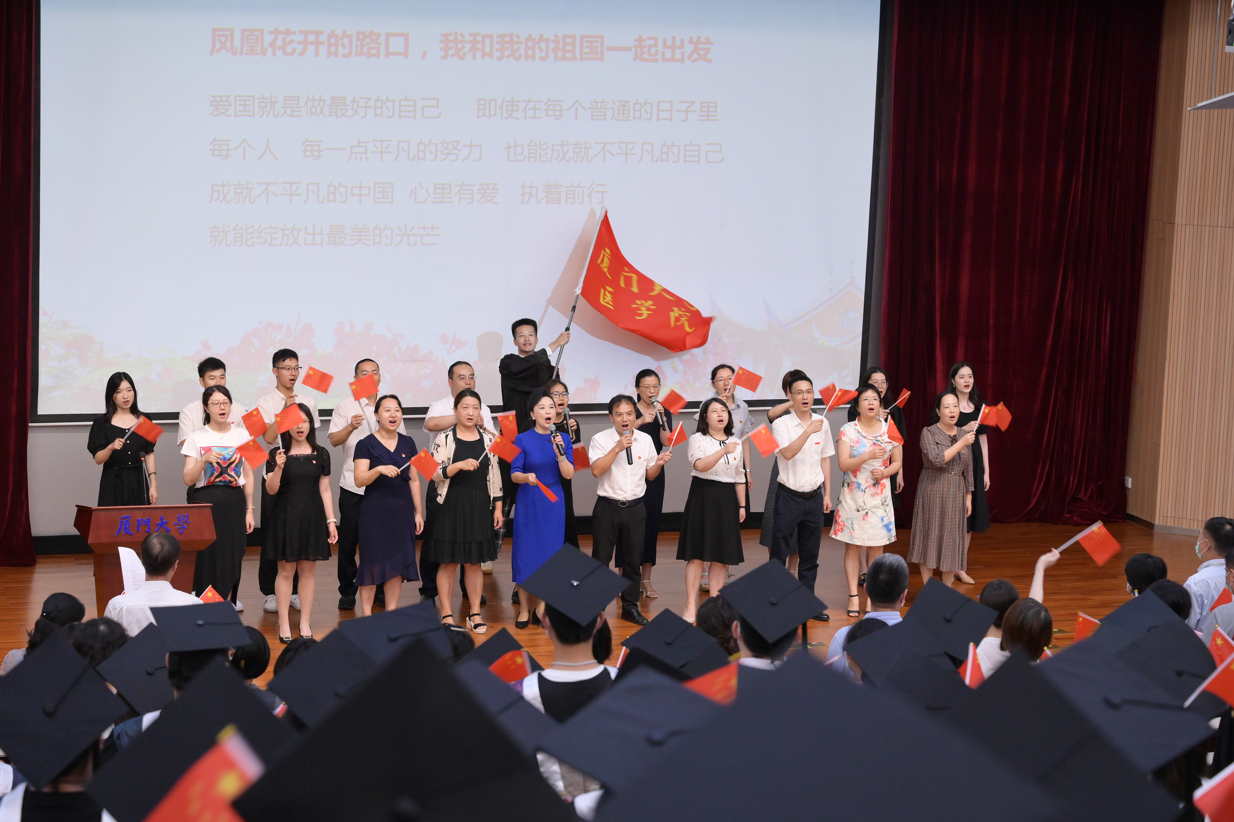 最后,毕业生合唱团与全体师生高声齐唱《厦门大学校歌》,医OD(中国)2021届毕业典礼落下帷幕。