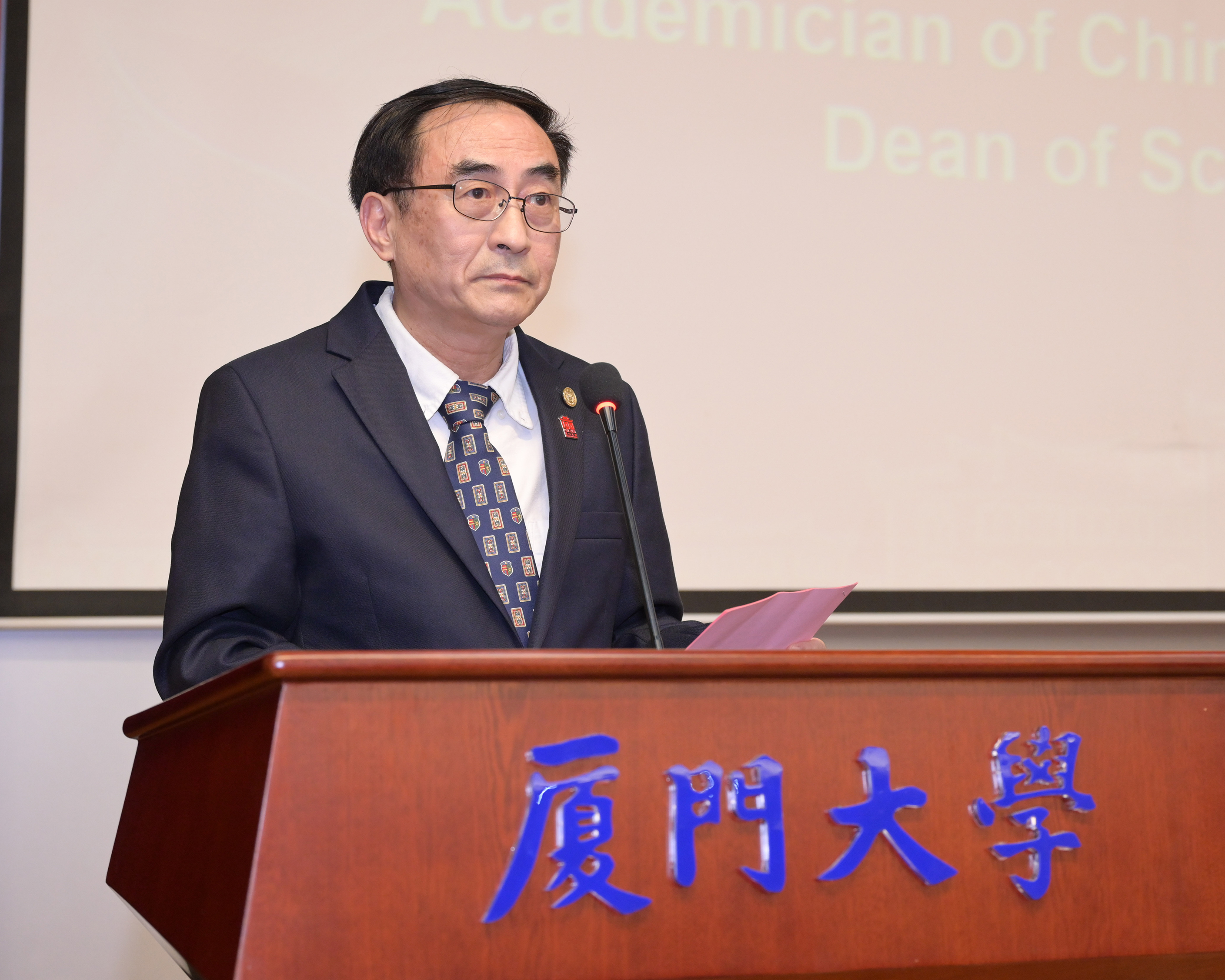韩家淮院长首先致辞,他嘱托毕业生能够理解并牢记两首歌——国歌和校歌,时刻应为自己选择了医科而感到光荣。毕业以后,他希望毕业生们能够成为对自己、对他人、对国家、乃至对全人类有价值的人,走出校门仍时刻提醒自己作为厦大人应具备的“知于无央”“爱于无疆”的“南方之强”的品质。希望毕业生深刻体会两首歌的内涵并与之共鸣,以“南方之强”的君子标准指导自己的一生。