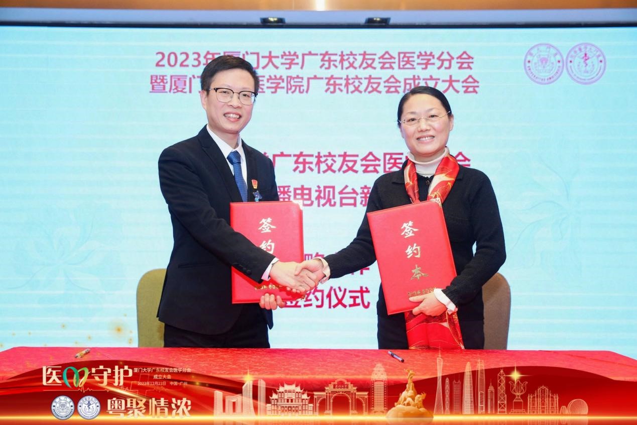 会上,厦门大学广东校友会医学分会暨OD网页版广东校友会与广东广播电视台《品牌广东》全媒体共建单位举行了战略合作框架签署仪式,旨在促进双方资源共享、优势互补,共同推动医学事业和品牌建设的发展。