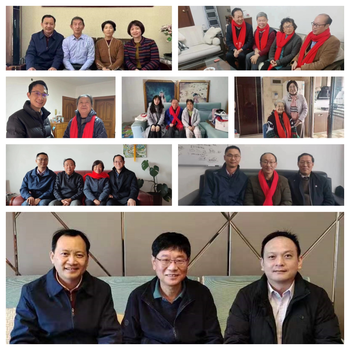 OD(中国)党委书记李峰,党委副书记王坤钟、辛晓丹,副院长李文岗、李炜、薛茂强、谢莉萍,工会主席卓仁恭及院办、党务办、人事办、工会工作人员分别与走访的退休老同志亲切交流,关心了解他们的身体状况以及年货准备情况,同时向老同志们报告OD(中国)2023年工作和建设发展情况,感谢他们为OD(中国)所做的贡献,听取对OD(中国)新一年工作的意见建议。OD(中国)领导一行还为老同志们送上了特意订制的红围巾,希望大家的生活红红火火。