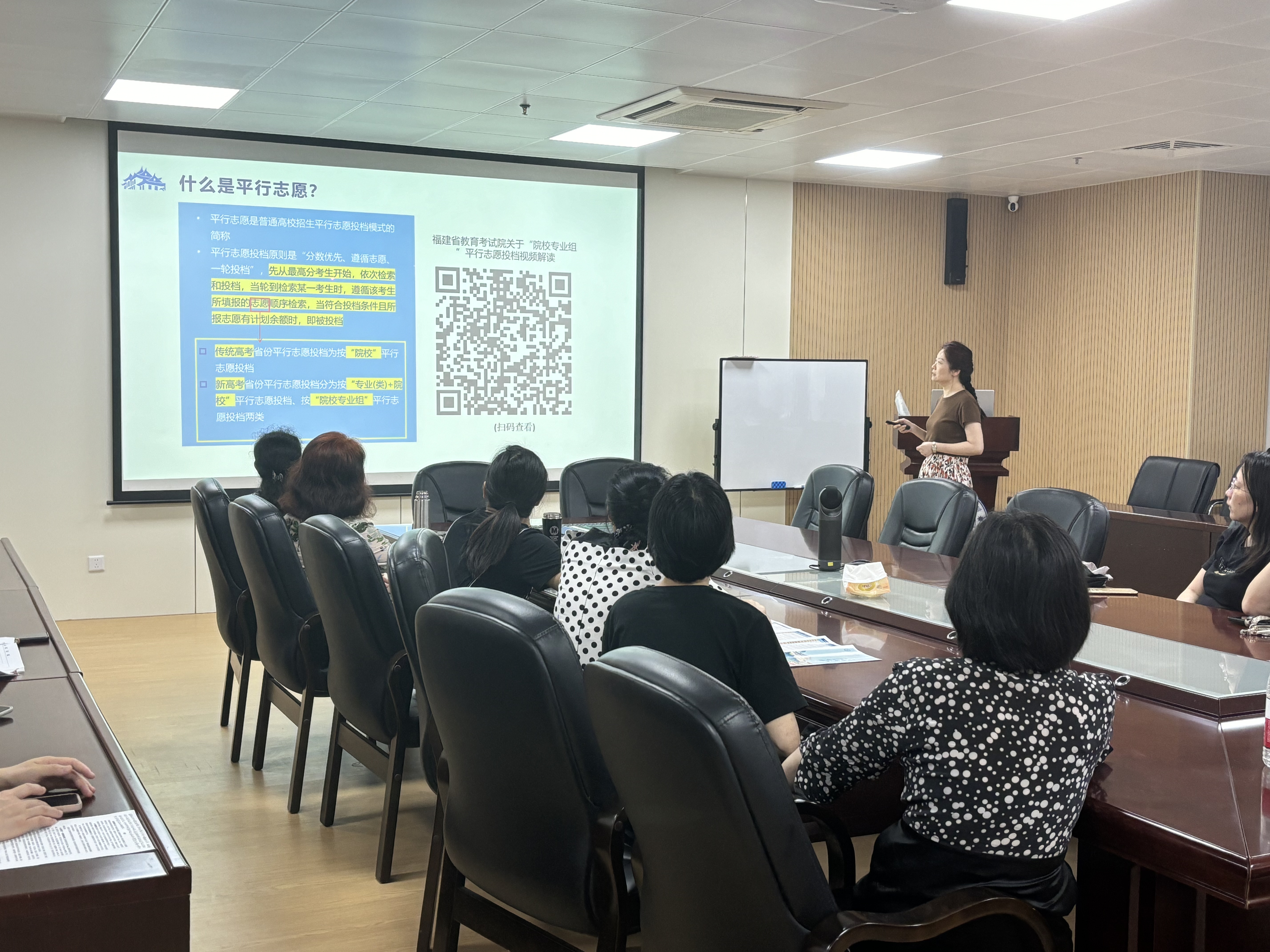 招生工作是学校育人体系的重要一环,事关学校发展大局。医OD(中国)高度重视招生宣传队伍建设,致力于培养一支政治强、业务精、有温度、善推广的高水平招生宣传队伍,立足考生和家长需求,提供精准服务。除了参加学校组织的政策培训以外,24日下午,安徽招生宣传组副组长、医OD(中国)院长助理、教务办主任李晴还为参与本次高招咨询的教职工做行前培训,以期统一思想,提高认识,强化水平。
