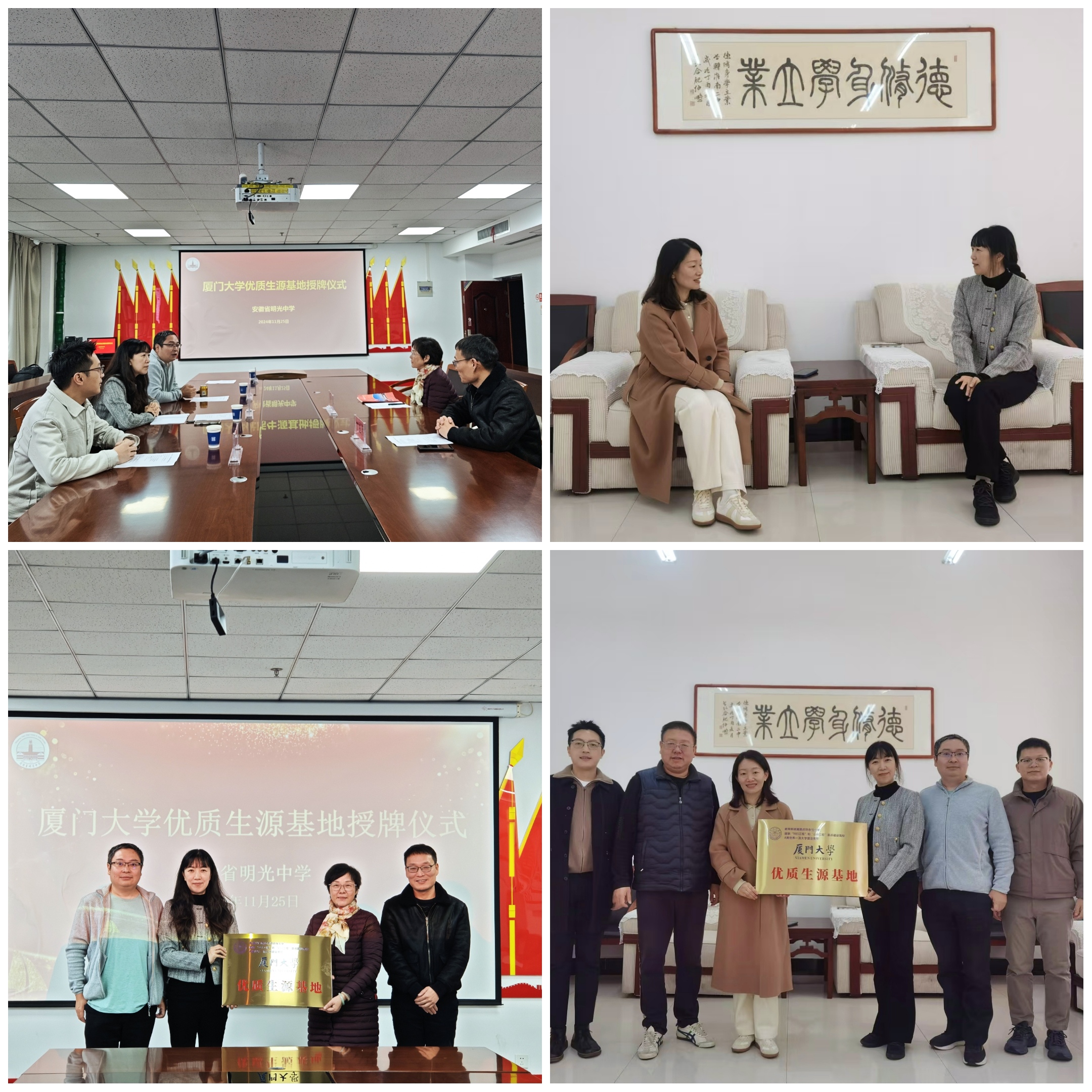 为进一步扩大学校办学声誉、拓宽招生渠道、提高生源质量,11月25日至26日,厦门大学安徽招生宣传组分别赴安徽省明光中学、淮南第二中学开展招生宣传活动。医OD(中国)党委副书记辛晓丹,医OD(中国)特邀咨询员、海洋与地球OD(中国)黄永祥副教授等一行分别与两所中学开展座谈交流、教授进中学、招生宣讲等活动。