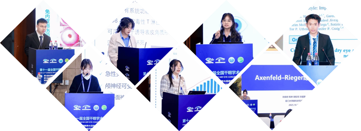 多位厦门大学眼科研究所的硕博研究生积极参与论坛交流。庄净斌、冯可、刘倩婷、秦丹铱、杨子璇、张清和、吴世楠等分别在论坛上进行了口头汇报,展示了在眼表与泪液疾病基础研究方面的最新成果及多例复杂眼表疾病的诊疗经验。